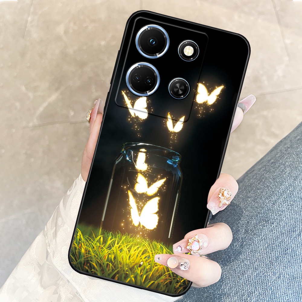 Infinix Note 30 4G / Note 30 5G Case Fashion Black Soft TPU Phone Casing For Infinix Note30 X6711 / X6833B Animals Flower Silicone Cellphone Cover Bumper
