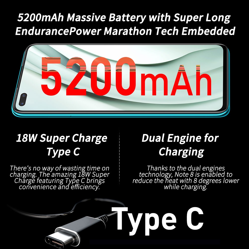 Infinix Note 8 Global Version Mobile Phone 6GB 128GB 64MP Quad Camera 5200mAh Battery 18W Fast Charg