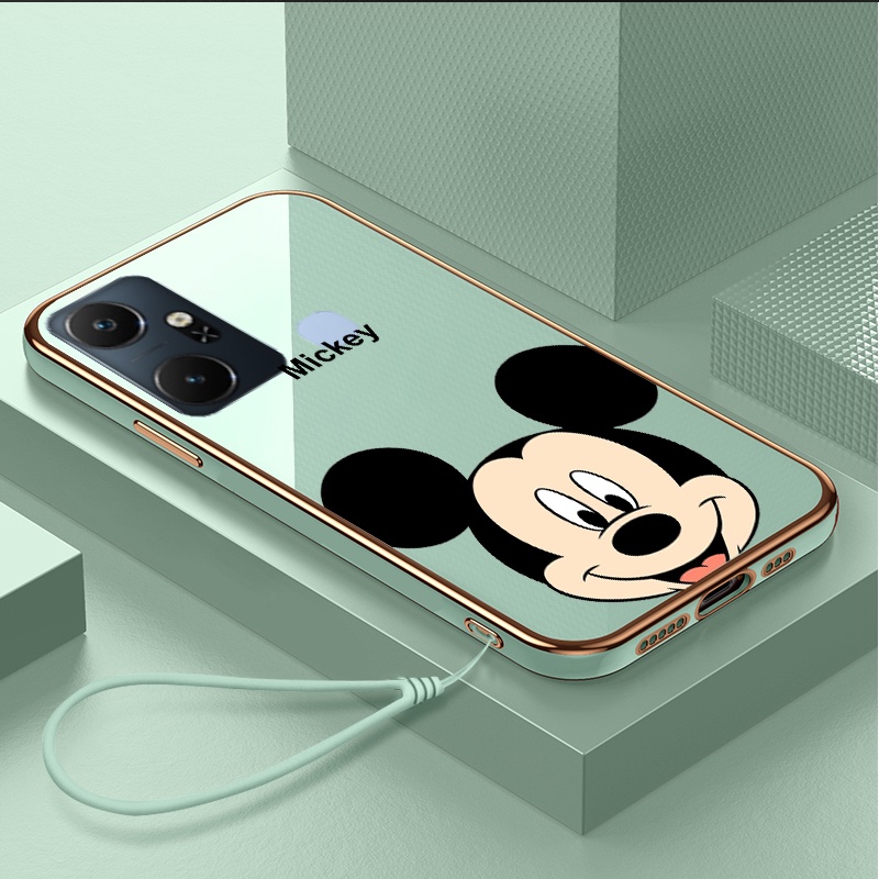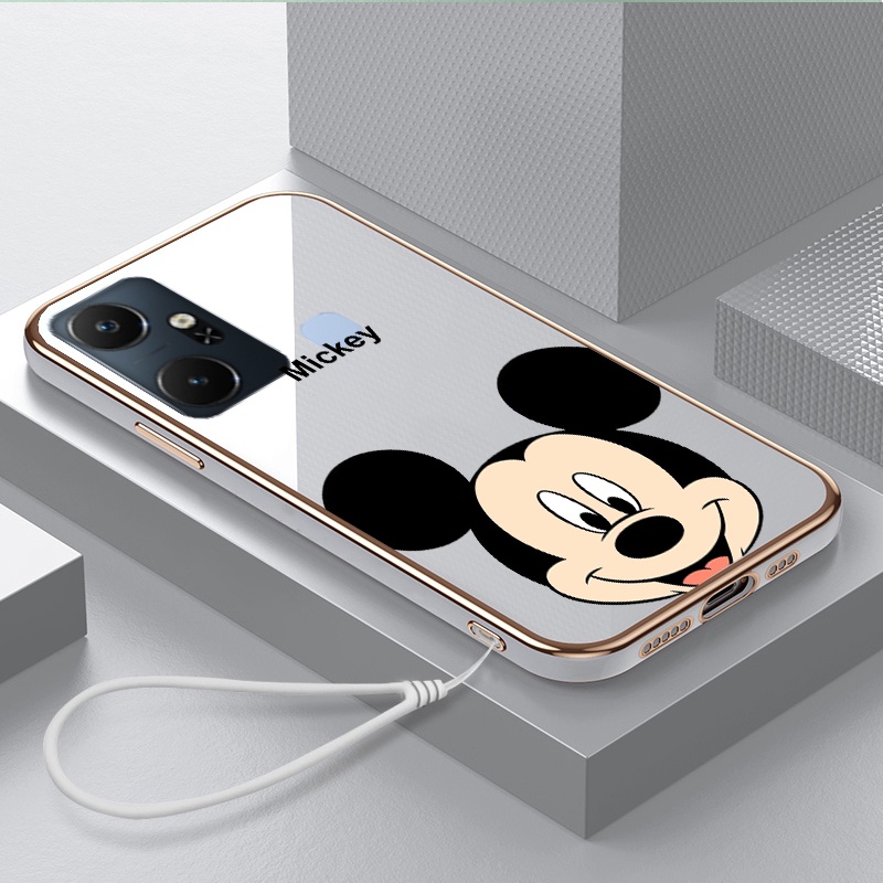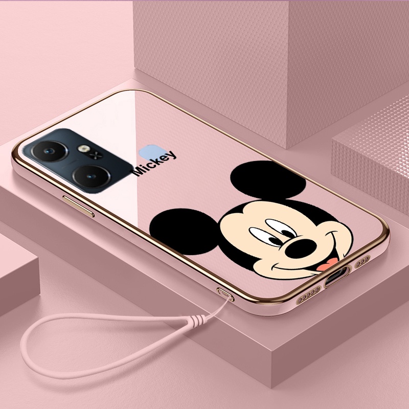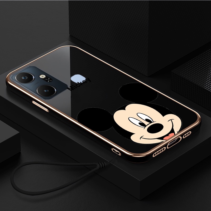 Infinix Smart 8 6 Plus 6 HD smart6+ Luxury Cute Mickey Mouse Casing Square Edges Plating Back TPU Soft Case Cover