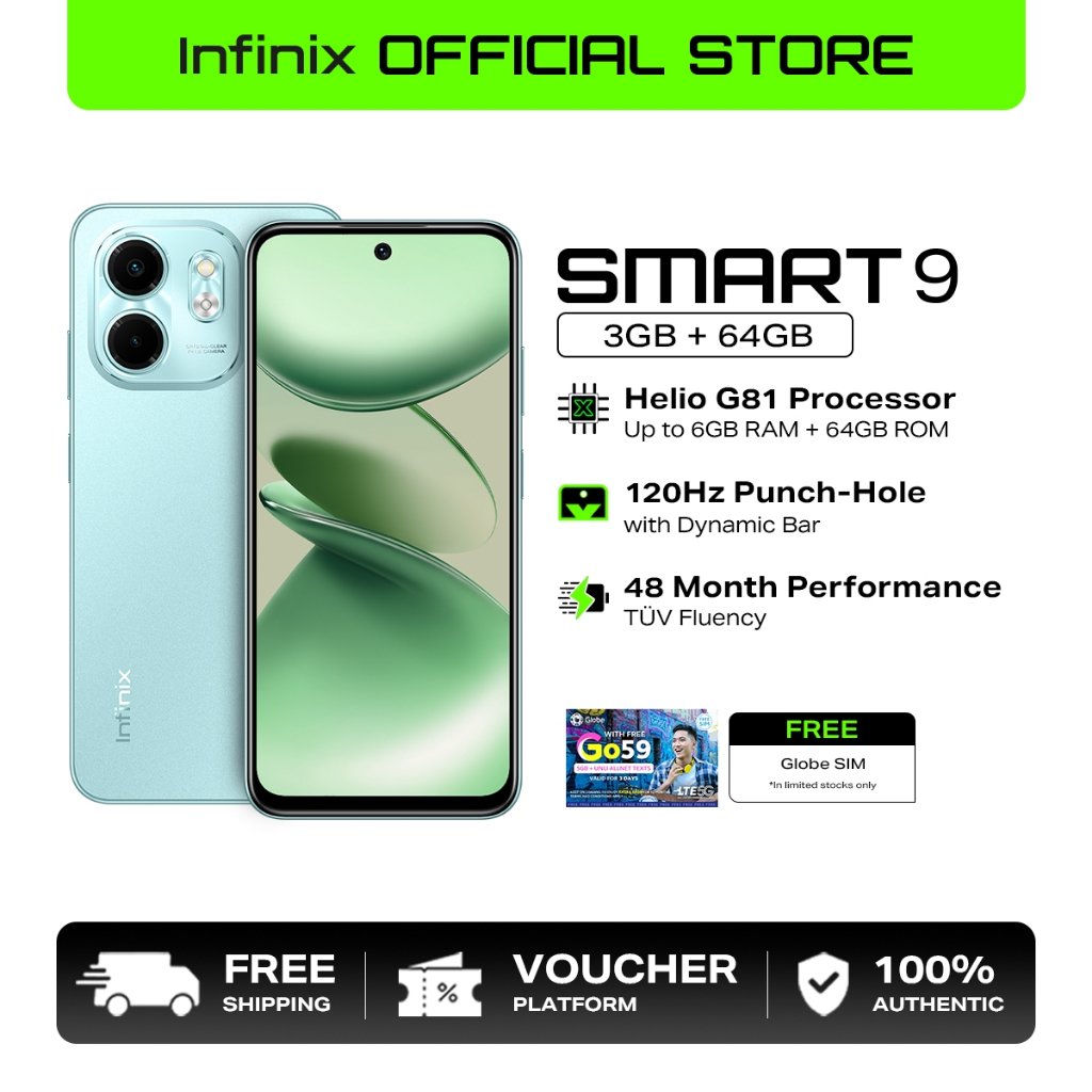 Infinix Smart 9, (up to 6GB [3GB + 64GB], MediaTek Helio G81, 120Hz Display, (1 year local warranty)