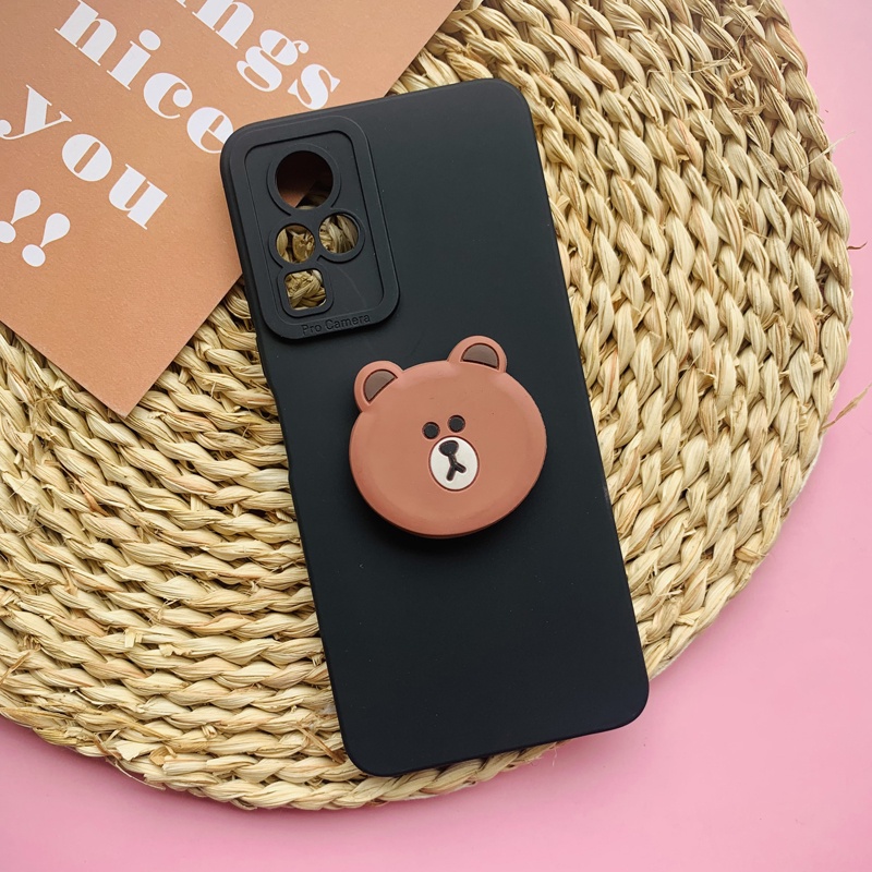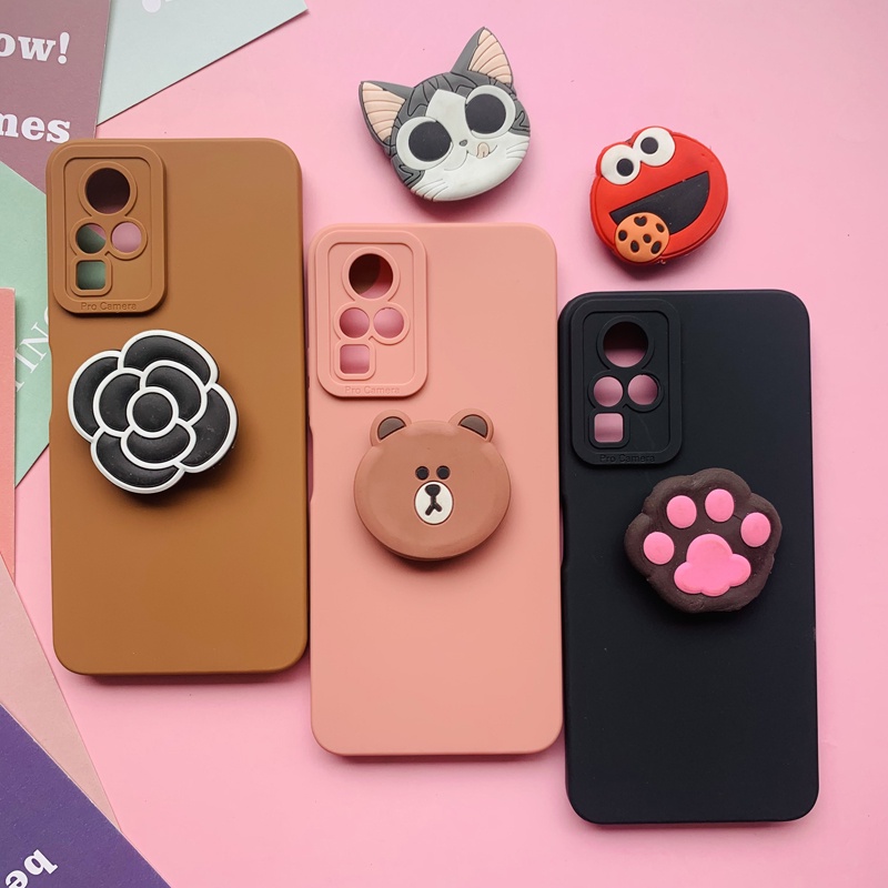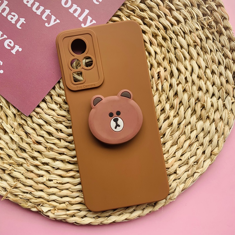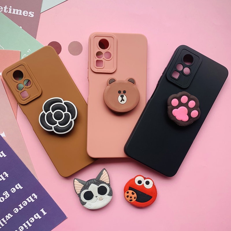 Infinix Zero X Neo / Zero X Pro Caseing Angel Eye Camera Protect Soft TPU Silicone Cover Case with 3D Cartoon Phone Stander Bracket Holder