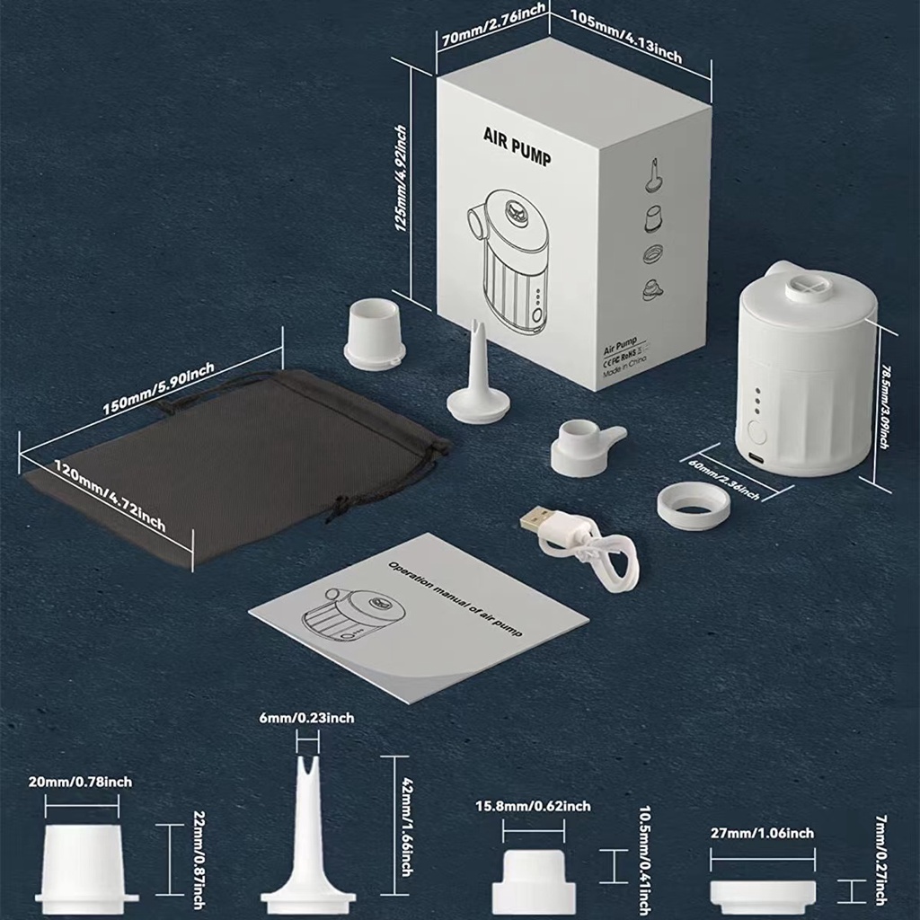 Inflatable Electric Pump Rechargeable Air Bed Pump, 4000mAH Battery Powered, Mini USB With 4 Nozzles Fast Deflation, Suitable For Cushions, Swimming Pool Toys, Floats, Vacuum Storage Bags