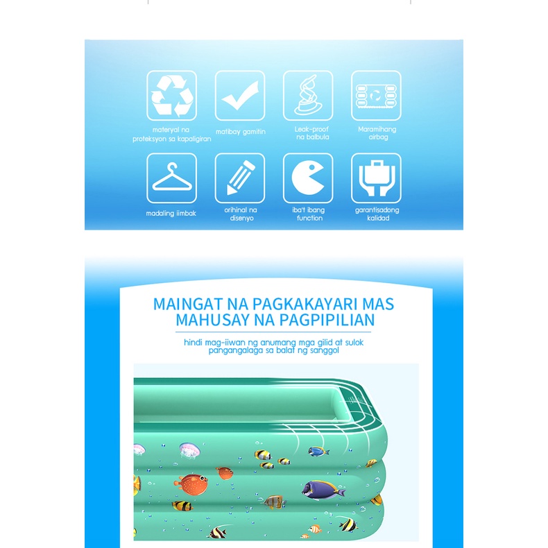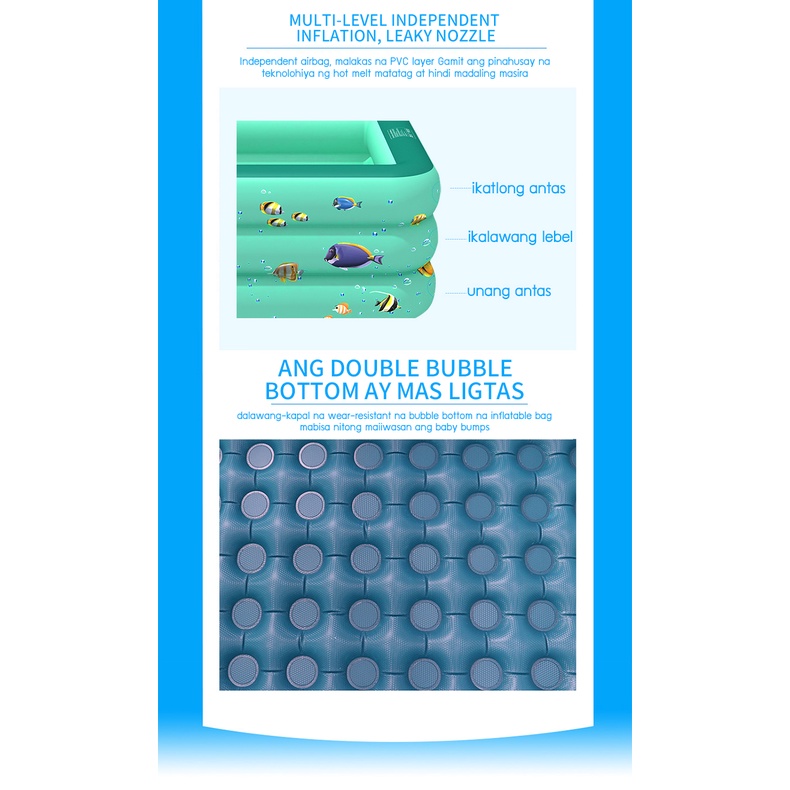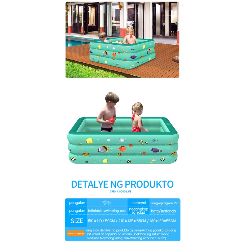 Inflatable Pool Kids Inflatable Swimming Pool 3 LAYERS Rectangular Family Size Thickened Adult Outdo