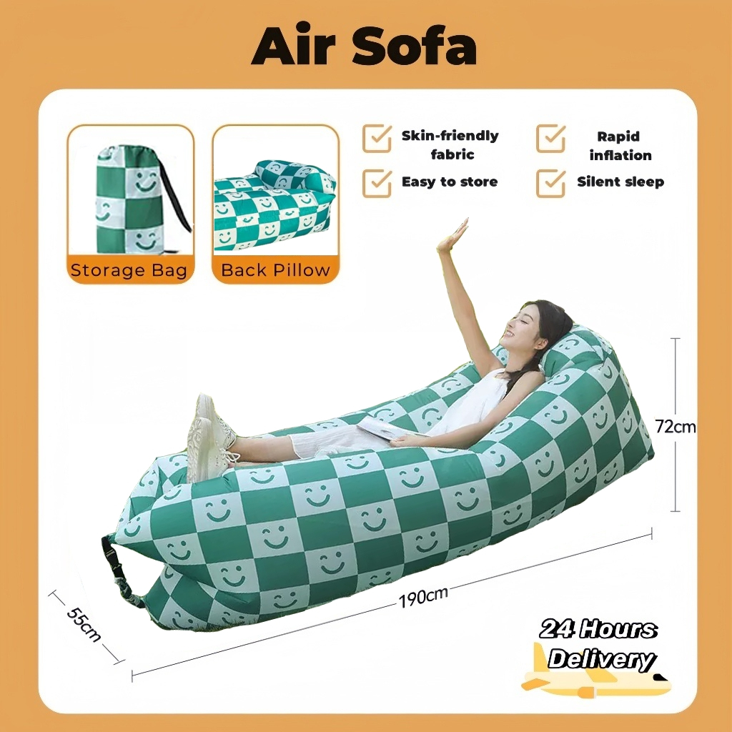 Inflatable Sleeping Bag Banana Bed With Pillow Folding Sofa Beach Air Bed for Camping Outdoor Chair