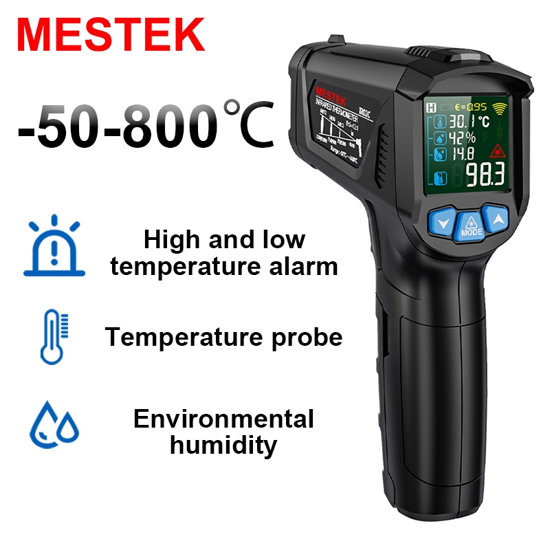 Infrared Thermometer for Industrial -50~600/800°C Non-contact Pyrometer Digital High Laser Temperature Meter Kitchen Cooking BBQ Food Outdoor liquid Adjust Emissivity Hand-held Ambient Temperature Heat Meter with K-type Temperature Probe