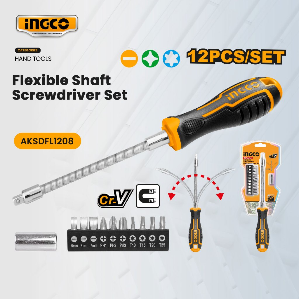 Ingco 12pcs Flexible Shaft Screwdriver Set AKSDFL1208 IHT