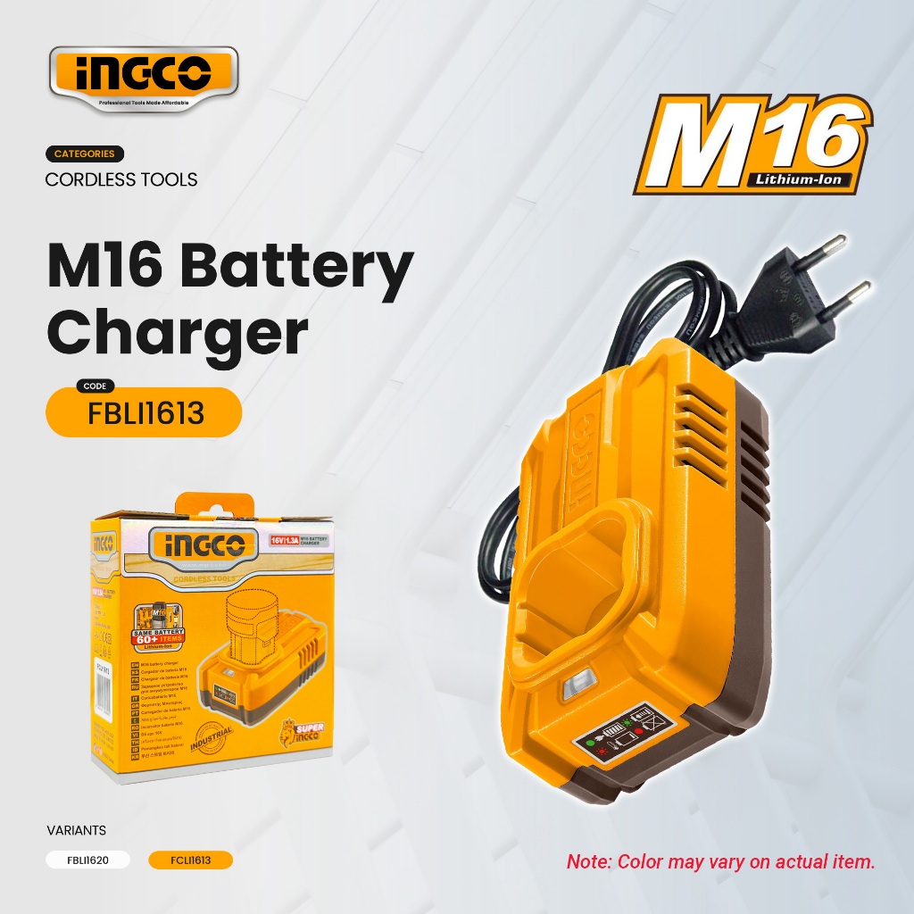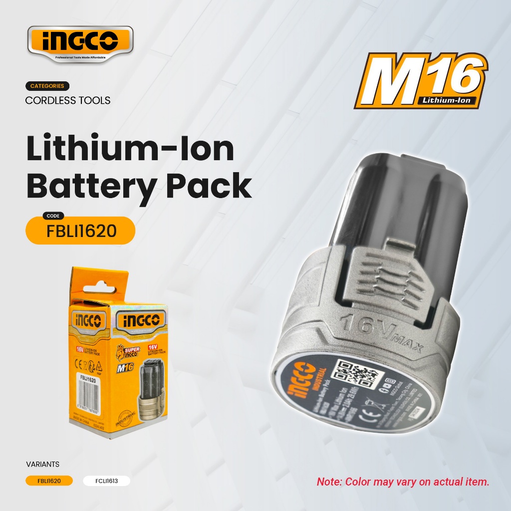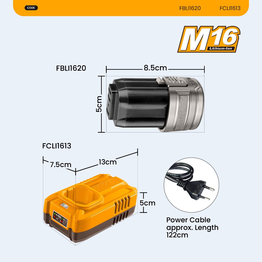 Ingco 16V Rechargeable Li-Ion Battery Pack | 1.3A M16 Battery Charger FBLI1620 | FCLI1613 - ICPT