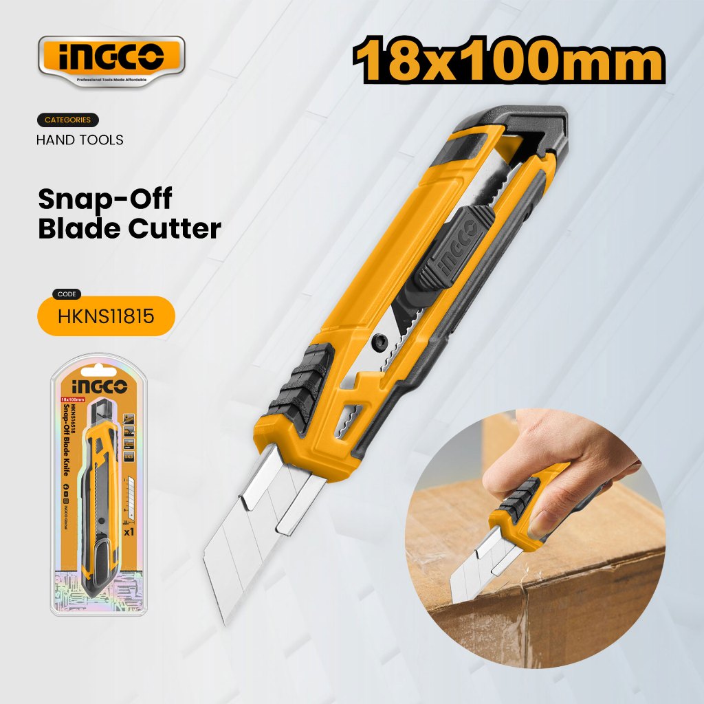 Ingco 18mmx100mm Retractable Cutter w/ SK5 Blade Heavy Duty Snap-Off Blade Cutting Tool for DIY IHT