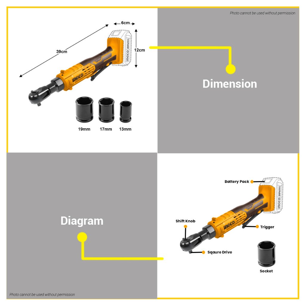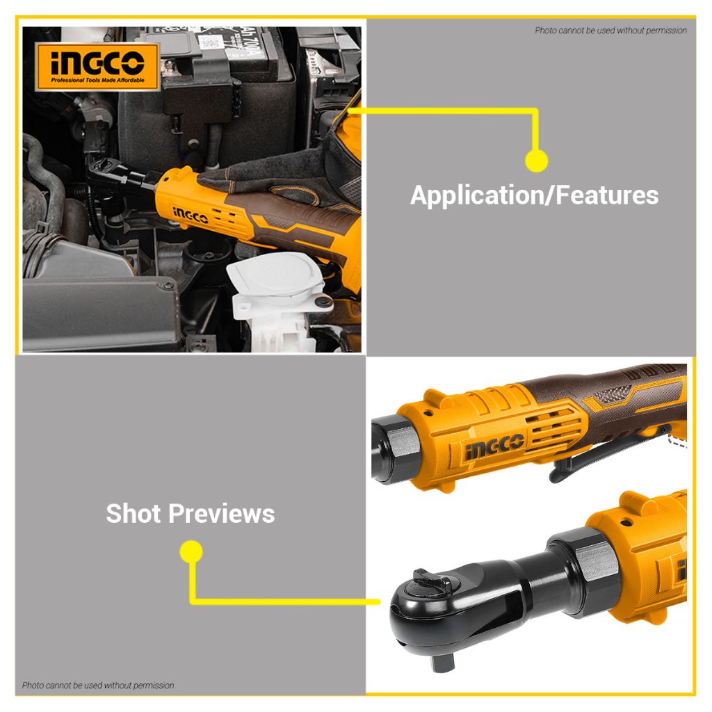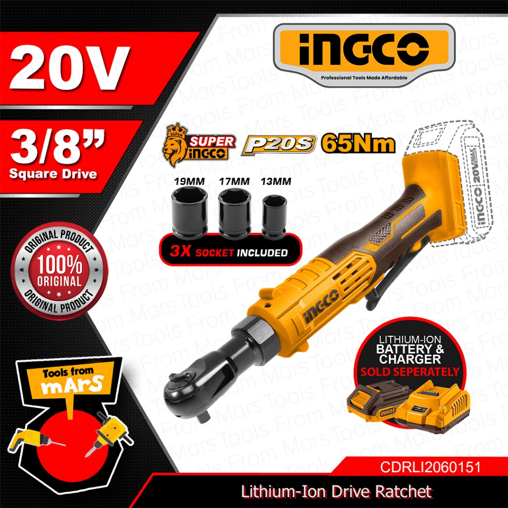 Ingco 20V Cordless Drive Ratchet High Torque Versatile Socket Set UNIT ONLY / SET -TFM- ICPT