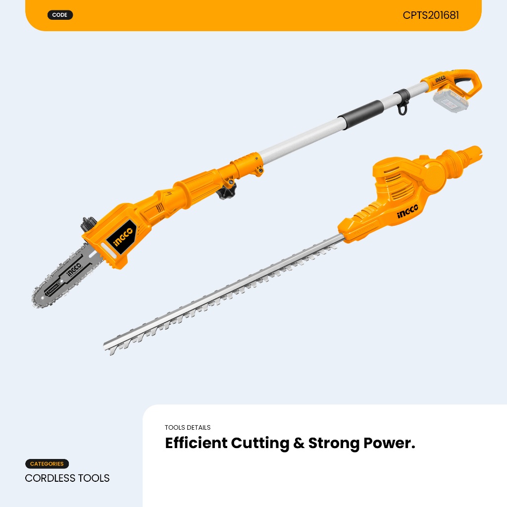 Ingco 20V Lithuim-Ion Pole Saw With Pole Hedge Trimmer With Battery and Charger CPTS201681 ICPT