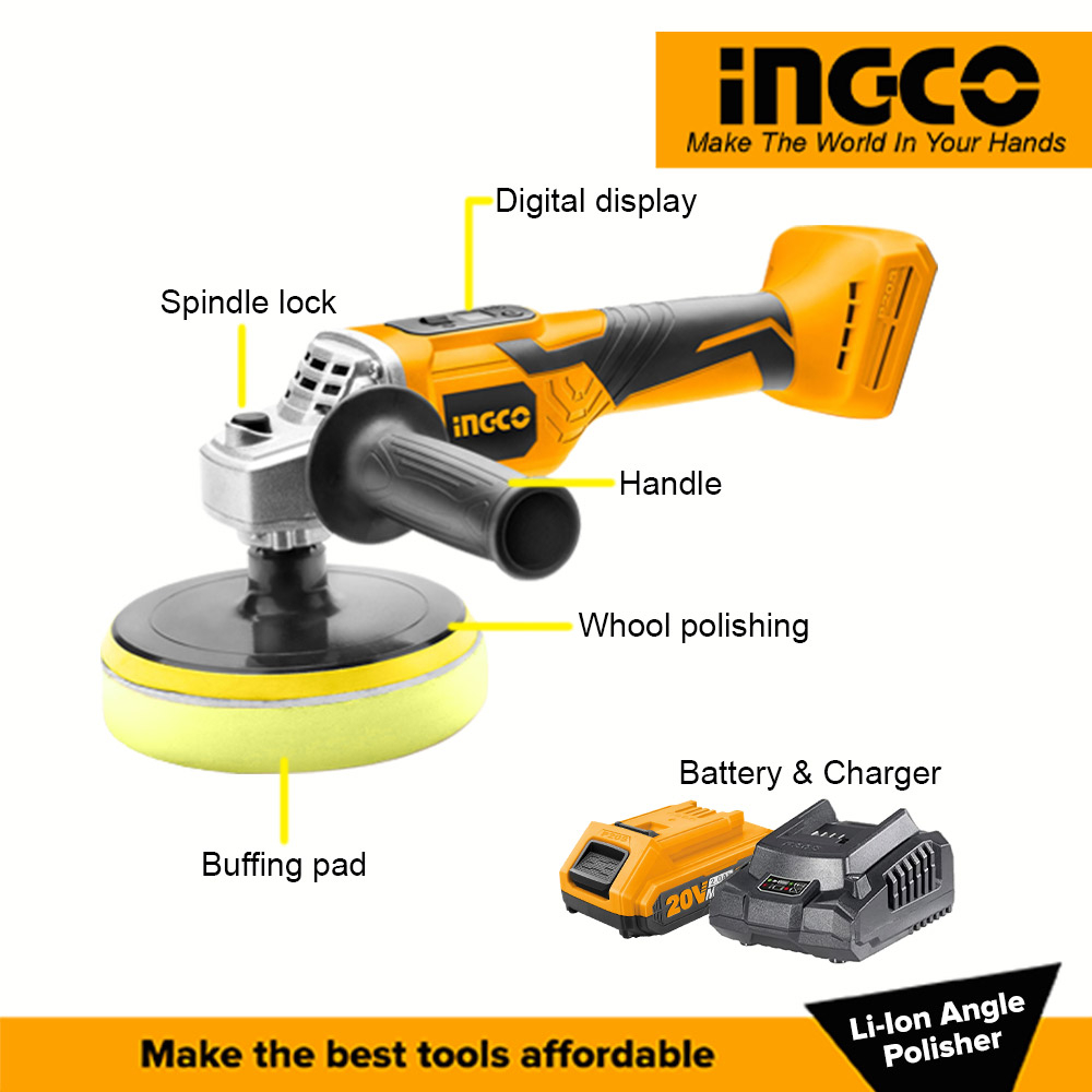 Ingco 20V P20S Lithium-Ion Cordless Angle Polisher Buffing Machine APLI2001 Icpt