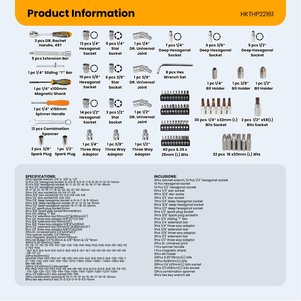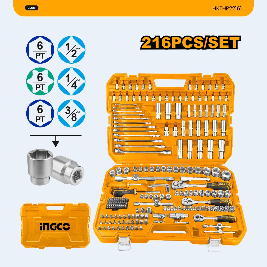 Ingco 216pcs Combination Tool Set for Automotive Car Repairs Hand Tool Kit HKTHP22161 HT2