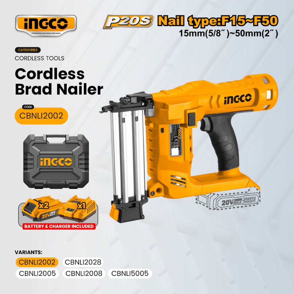 Ingco 35mm / 50mm 20V Cordless Brad Nailer Gun Heavy Duty Rechargeable Nail Tacker Gun ICPT