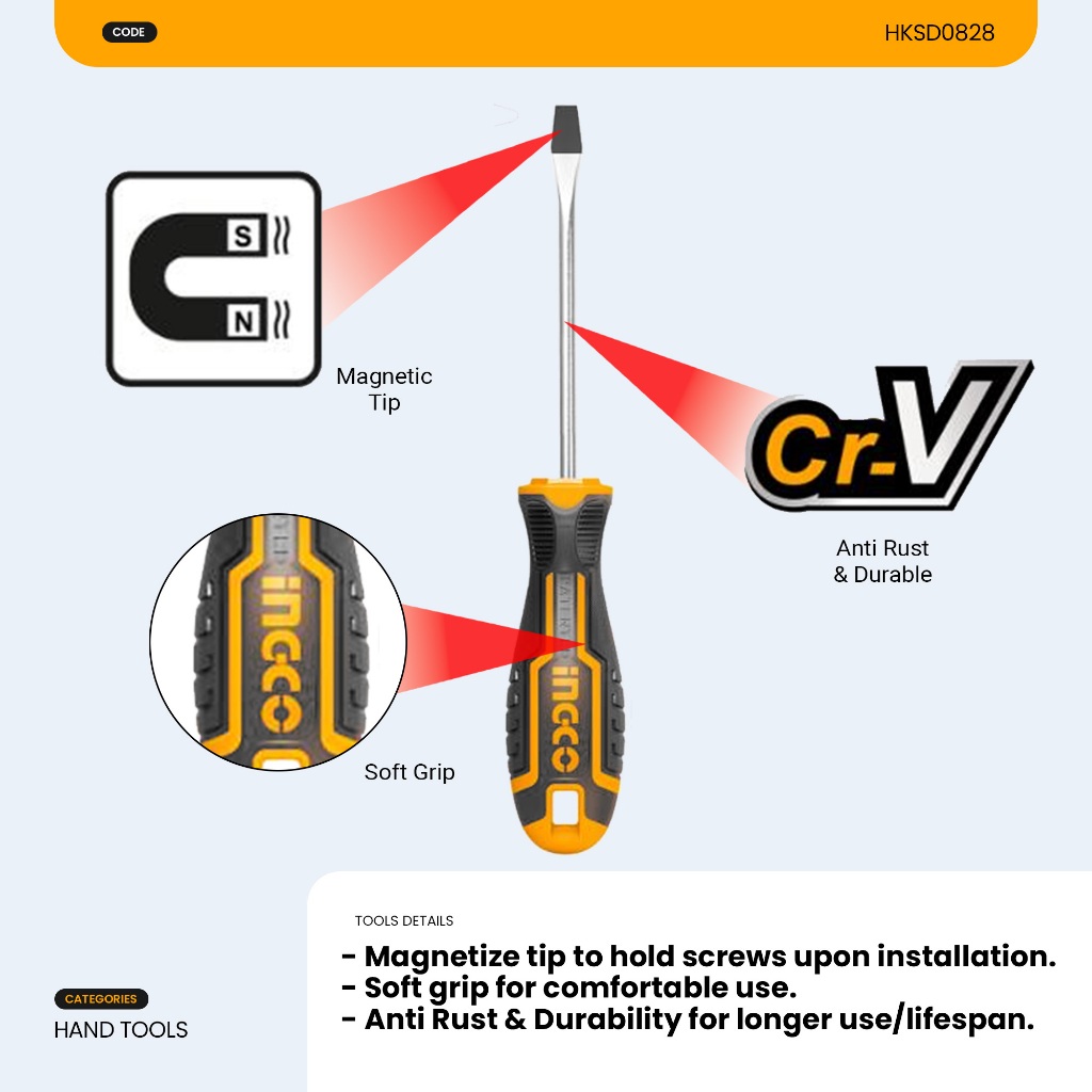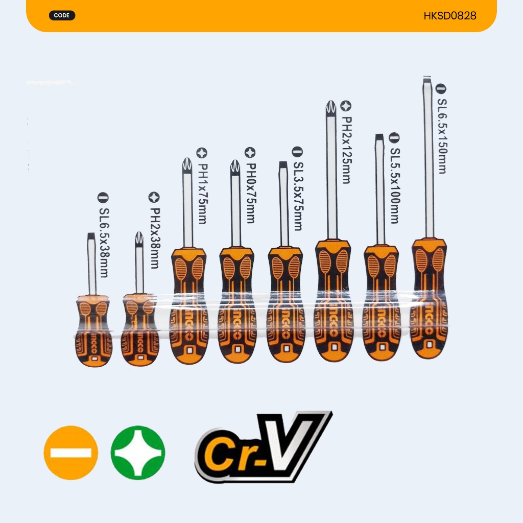Ingco 8pcs Magnetic Screwdriver Set Slotted & Phillips Screw Drivers Kit For Home & DIY Repair - IHT