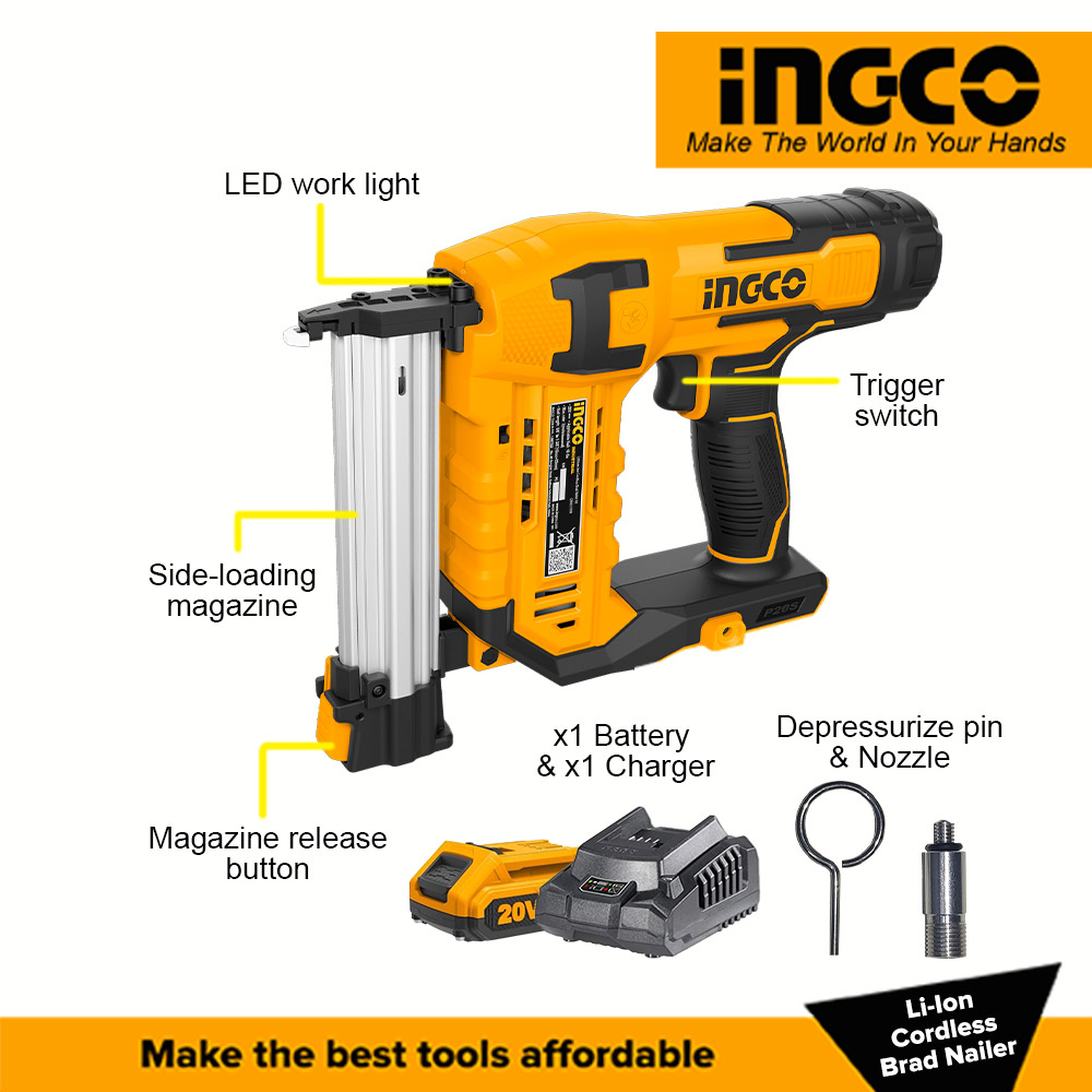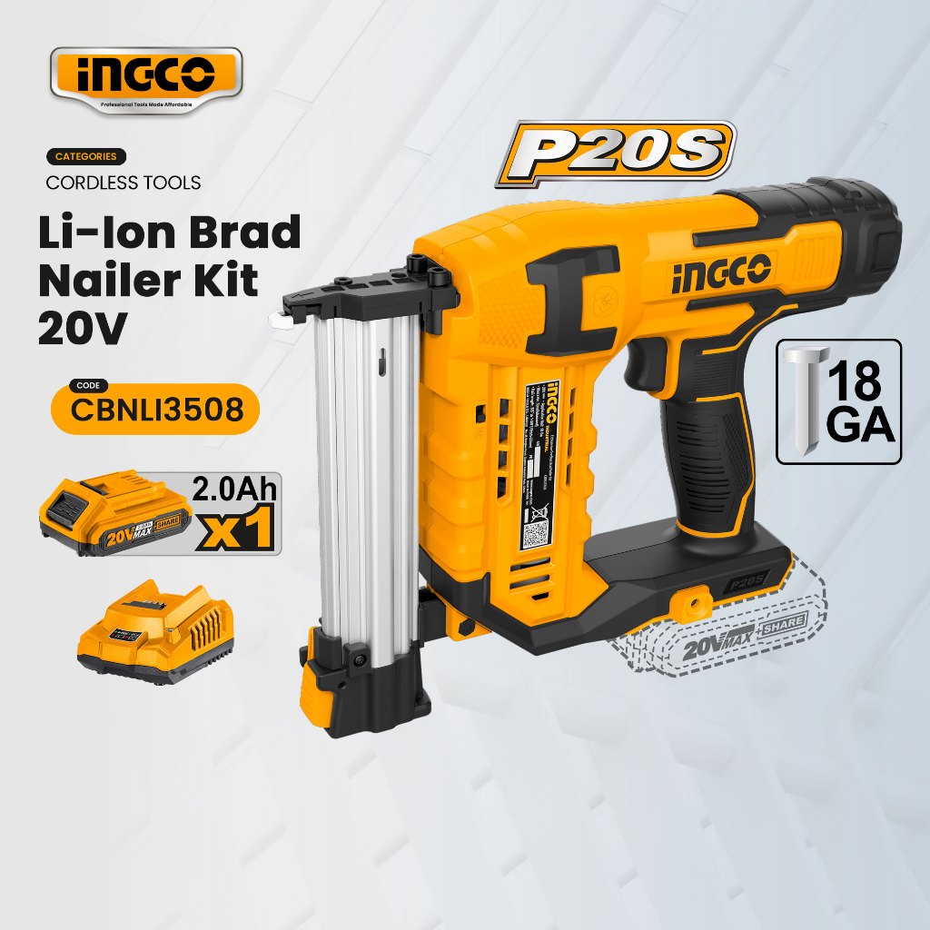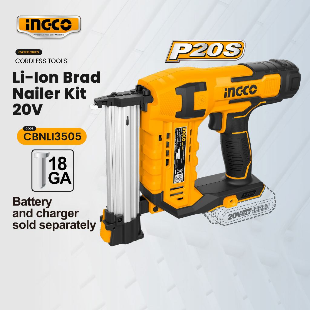 Ingco Cordless 20V Brad Nailer Nail Gun Power Tool For Framing And Furniture Assembly Unit/Combo Set