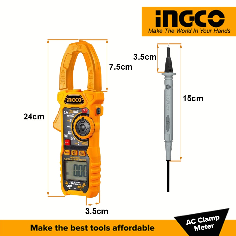 Ingco Digital AC Clamp Meter 1000AMP Electrical Tester Tool IPT