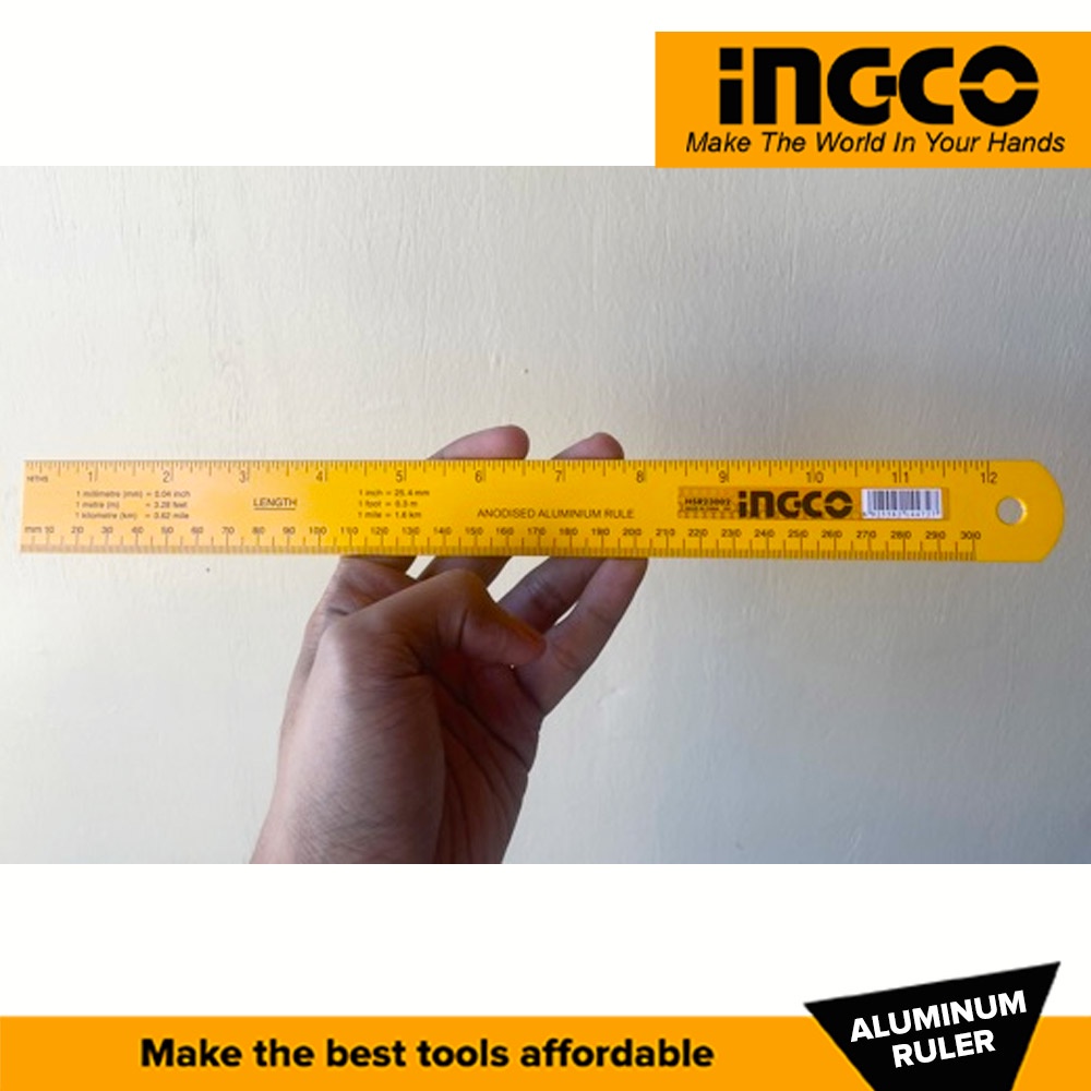 Ingco HSR23002 12-Inch Anodized Aluminum Ruler 0.7mm/m IHT