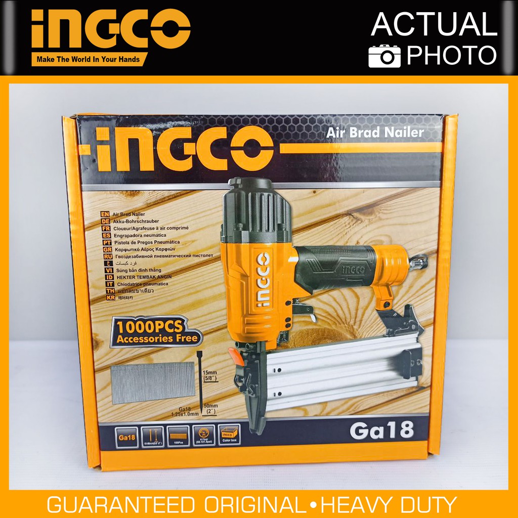 Ingco Pneumatic Air Brad Nailer Nail Gun Power Tool For Framing And Furniture Assembly 15-50mm Ga18