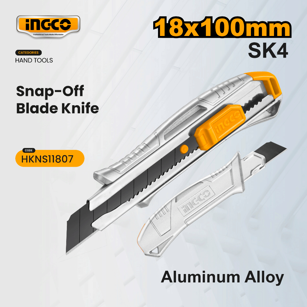 Ingco Snap Off Utility Blade Knife Cutter with 1pc SK5 Blade Cutting Tools HKNS1807 | HKNS11807 IHT