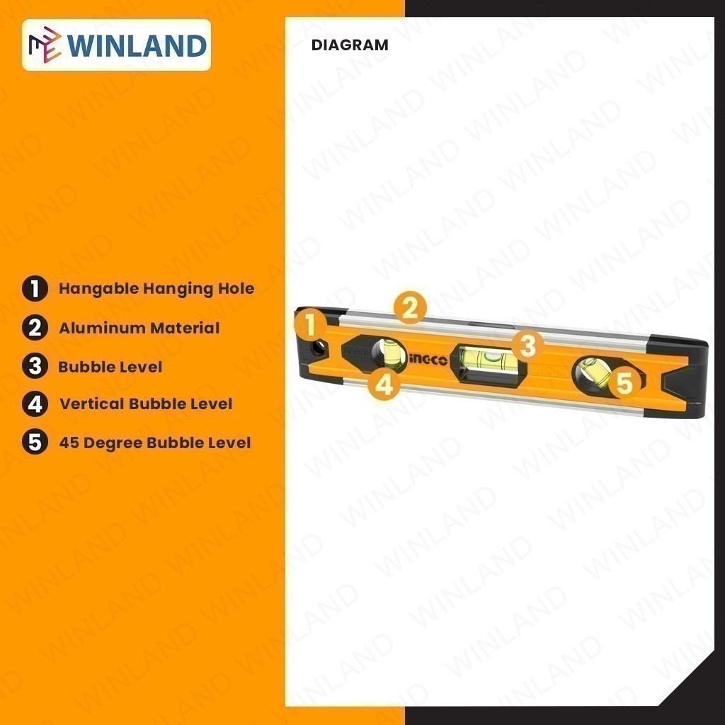 Ingco by Winland Magnetic Mini Spirit Level Bar with Magnet HMSL01030 ING-HT