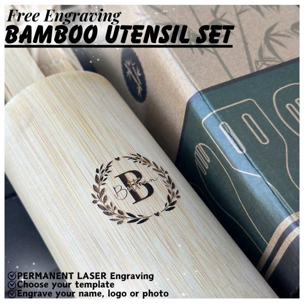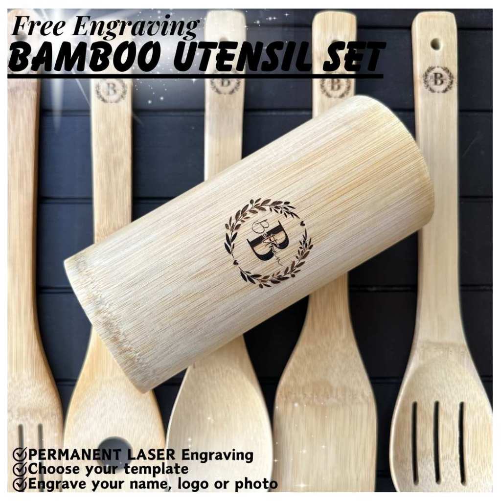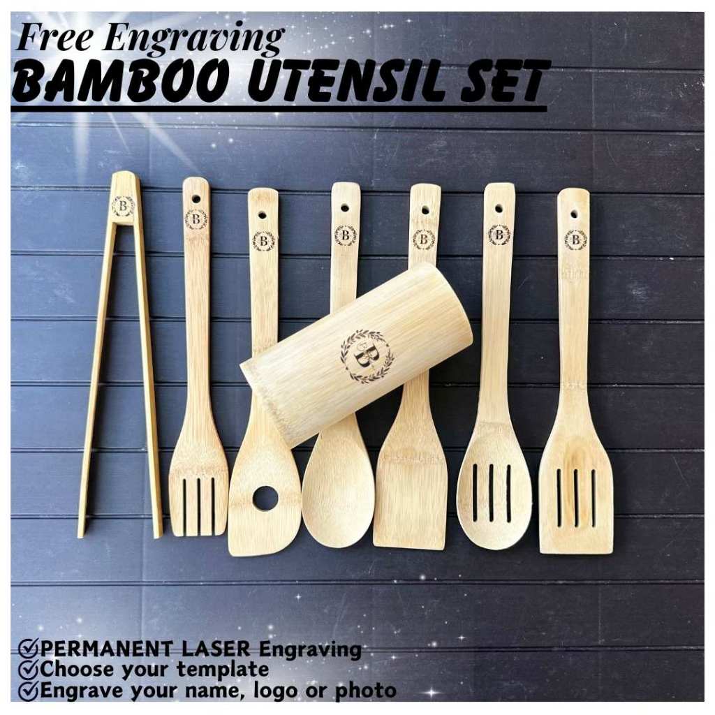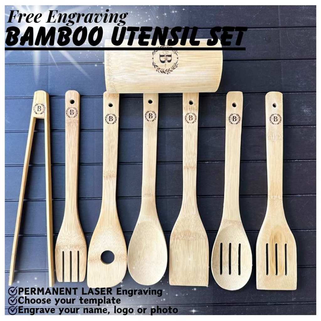 Ink And Style High quality Personalized Engraved Eco Bamboo Kitchen Utensil Set Wooden Tool Kitchen