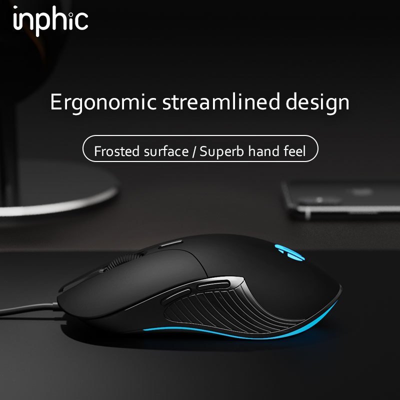 Inphic Wired Gaming Mouse 6 Buttons Programmable RGB Light Ergonomics Computer Optical Mouse B1