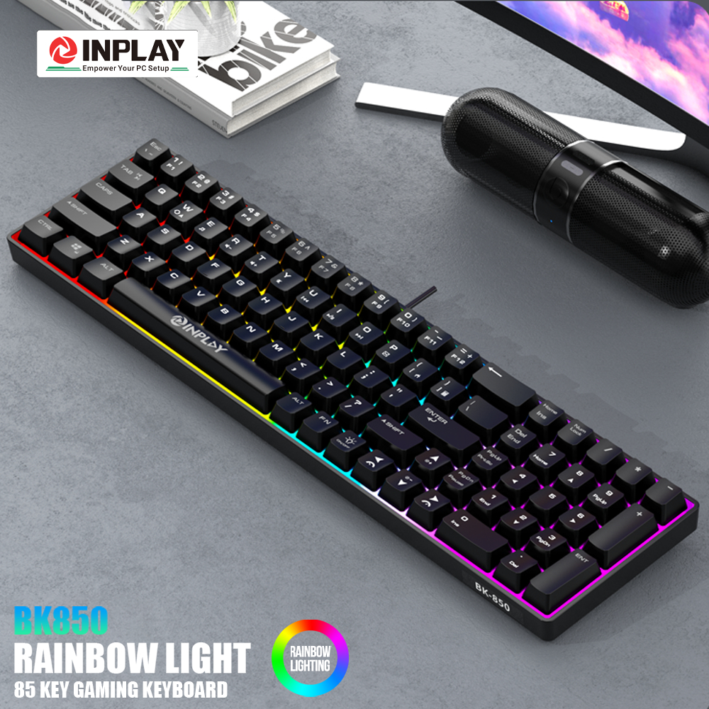 Inplay BK850 RGB Membrane Keyboard Rainbow Light Waterproof Smooth Gaming Keyboard For PC Laptop