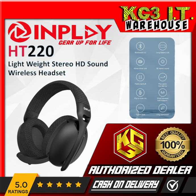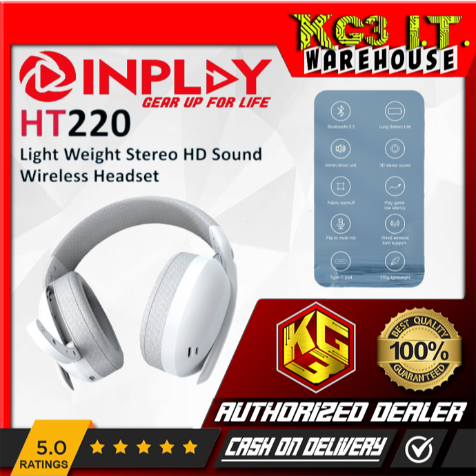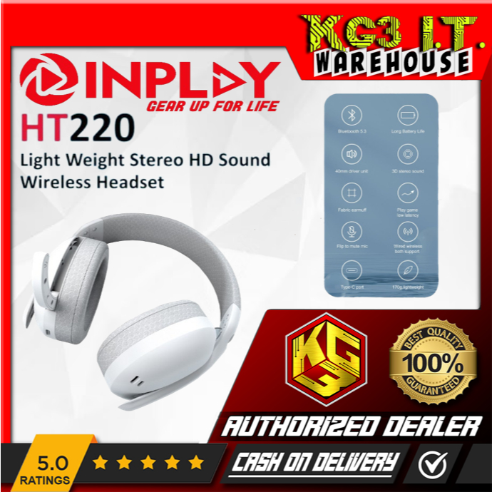 Inplay Headset Headphones HT220 Light Weight Stereo HD Sound Wireless Headset (Black/White)