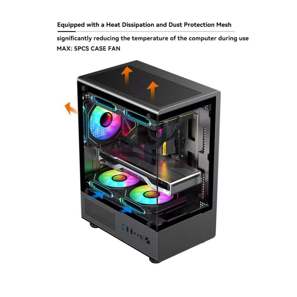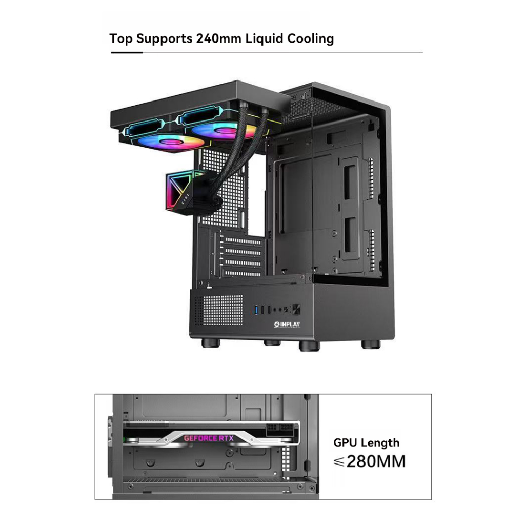 Inplay Openview V300 PC Case With Tempered Glass Mid-Tower M-ATX Desktop Case Gaming Casing For PC