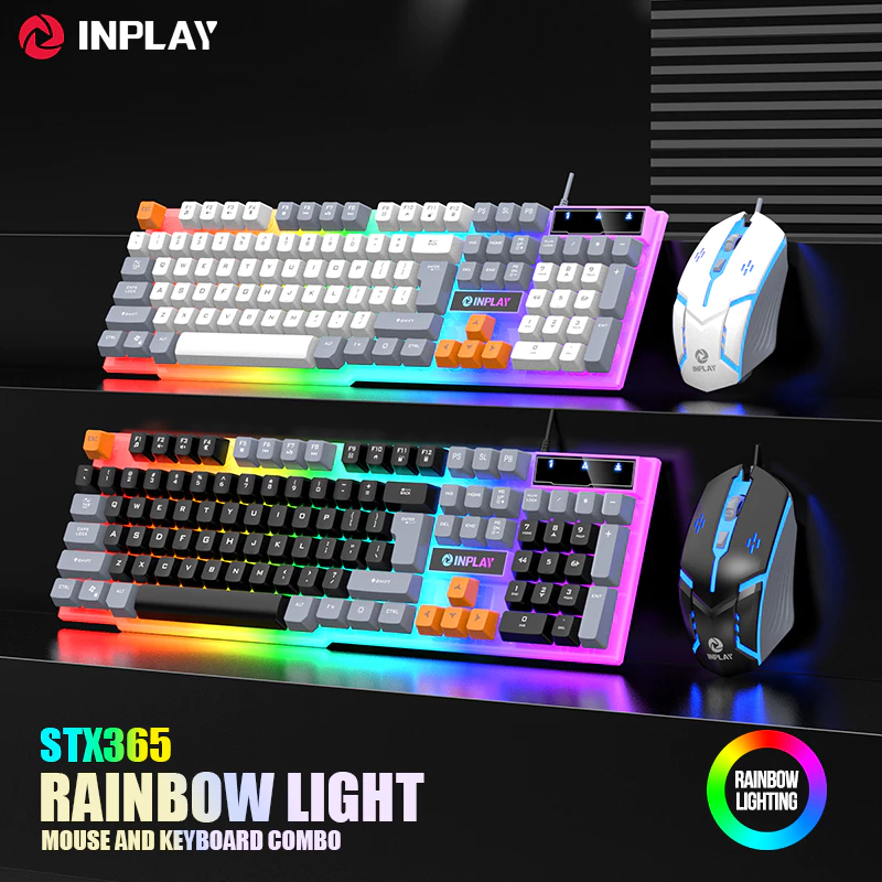 Inplay STX365 Colorful Keyboard and Mouse Set Combo Wired Gaming Keyboard Mouse Set For Pc Laptop
