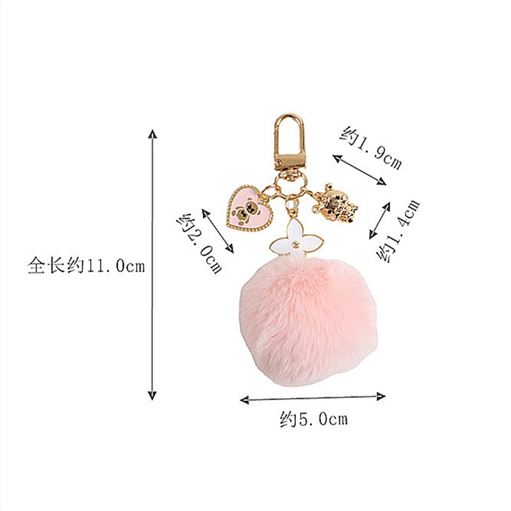 Ins New Kawaii Love Bear Pink Black Pompom Keychain Ladies Car Key Holder Girl Key Ring Charms Accessories Gift