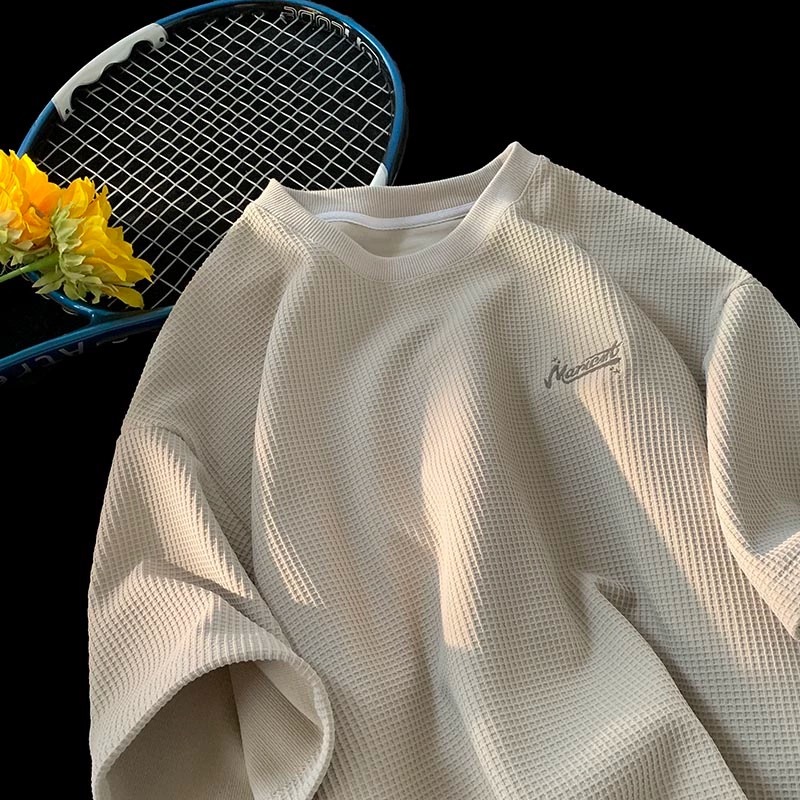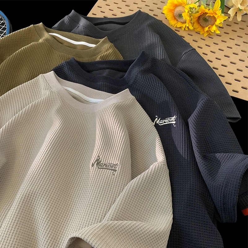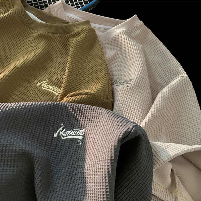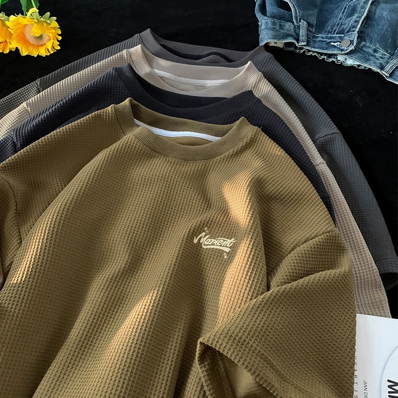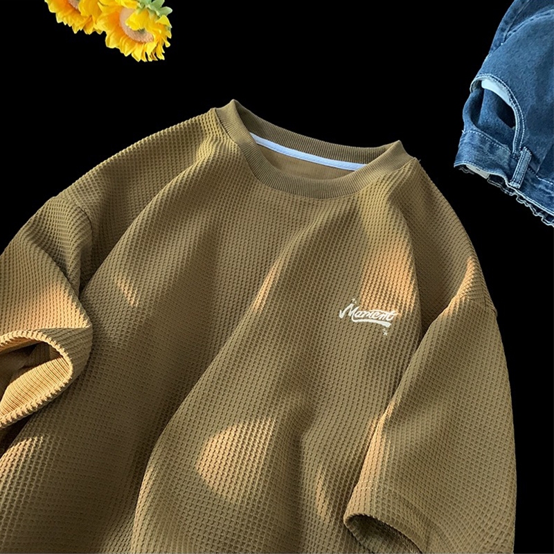 Ins waffle short sleeve aesthetic shirt plain summer t shirt for men Street Korean oversized shirts