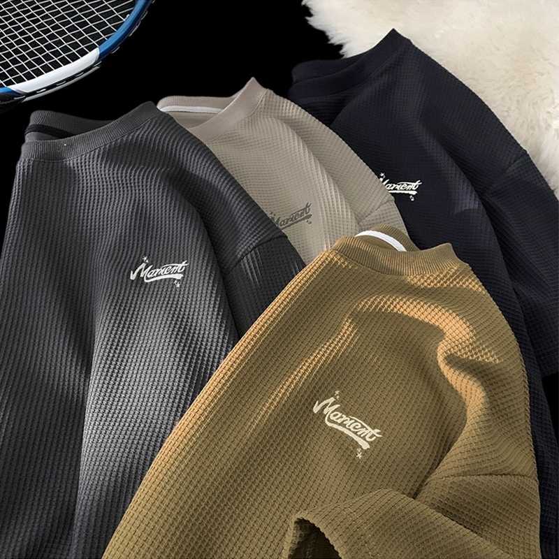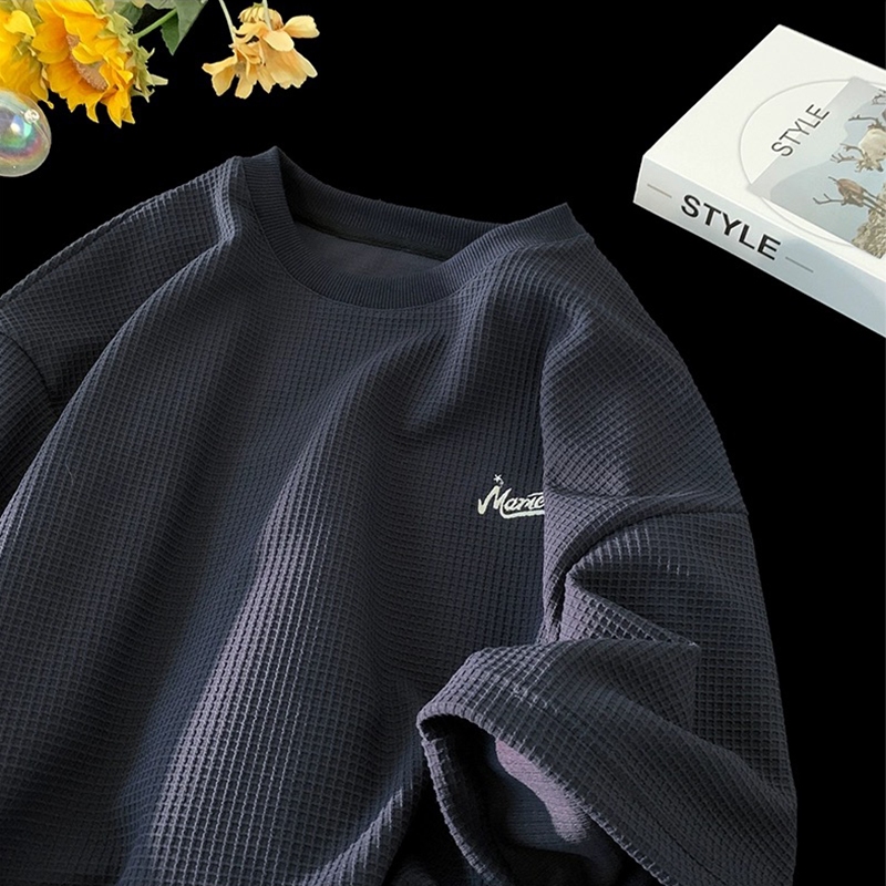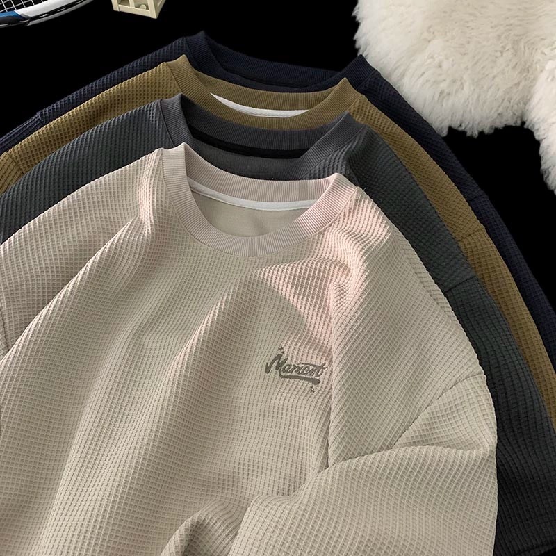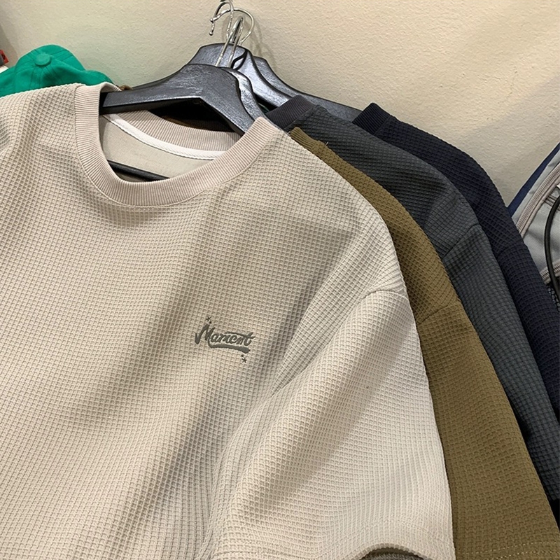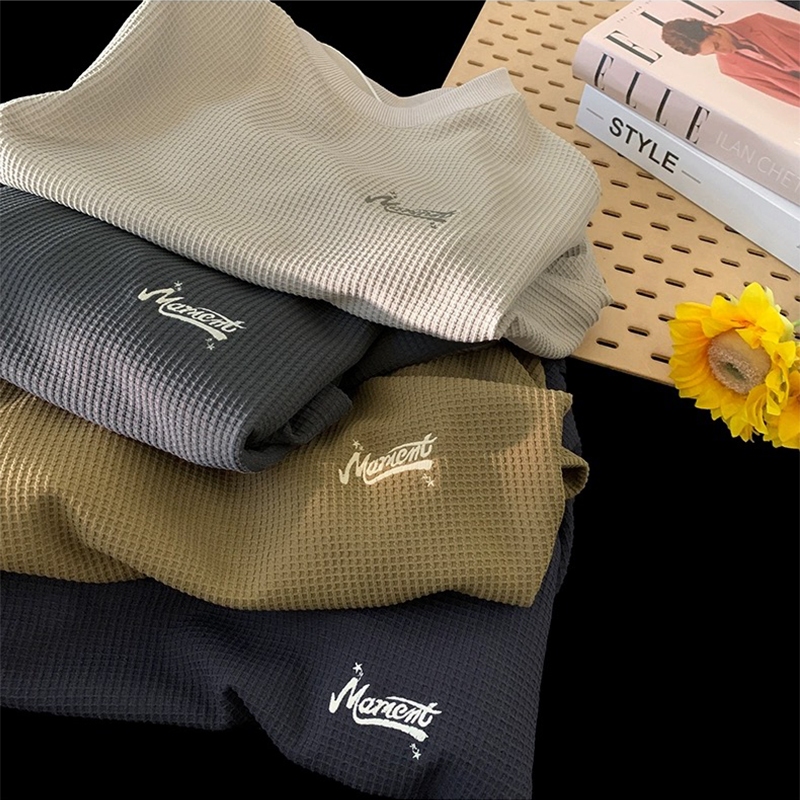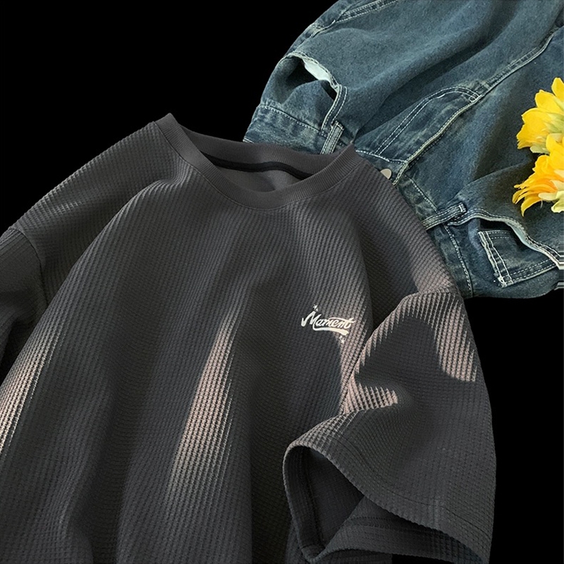 Ins waffle short sleeve aesthetic shirt plain summer t shirt for men Street Korean oversized shirts