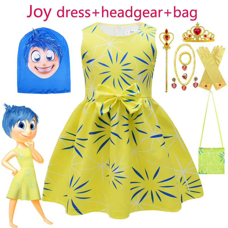 Inside Out 2 Costume for Kids Girls Joy Dress Disgust Headgear Bag Wig Halloween Costume for Kids Girl 3 4 5 6 7 8 9 Years Old Joy Role Play Costumes Clothes
