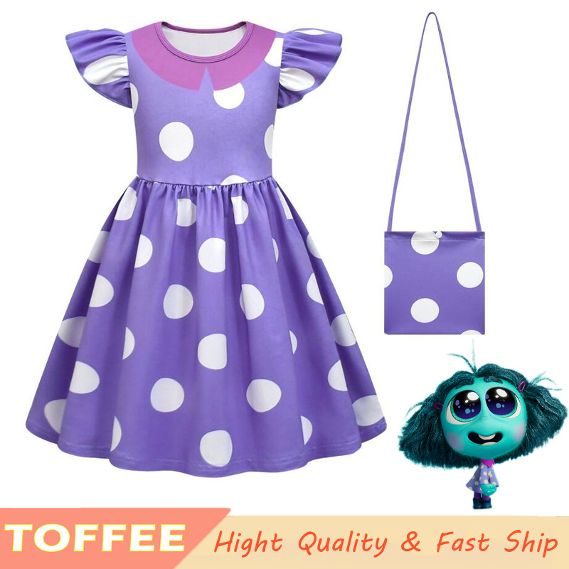 Inside Out 2 Envy Purple Dress For Kids Girl Halloween Cosplay Costume Short Sleeve Gown Christmas Outfits Girls Dress Set