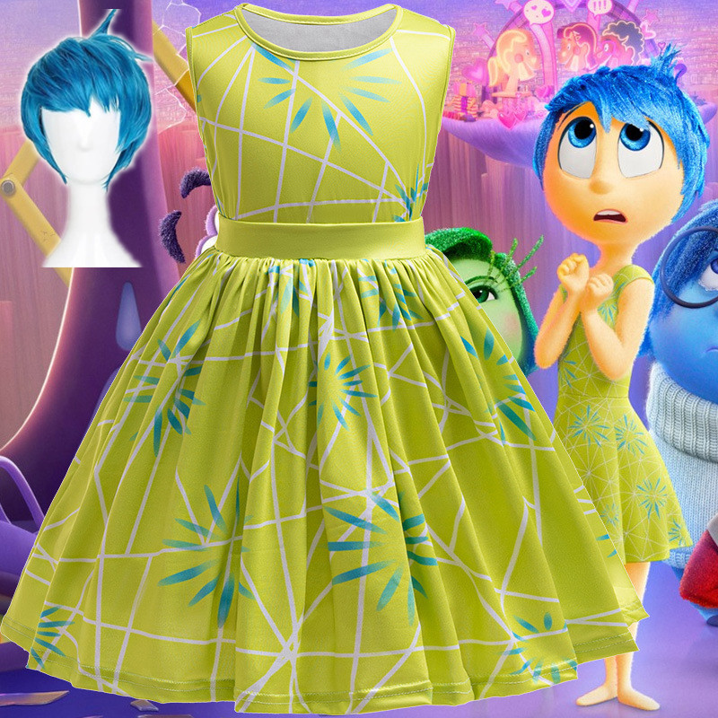 Inside Out Costume for Kids Girl 5-12 Year Joy Disgust Sleeveless A-line Dress Inside Out 2 Birthday Theme Halloween Costume Party Performance Outfit