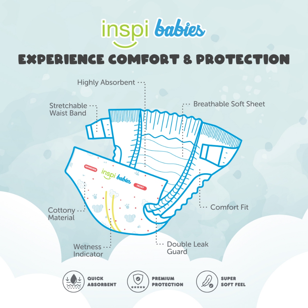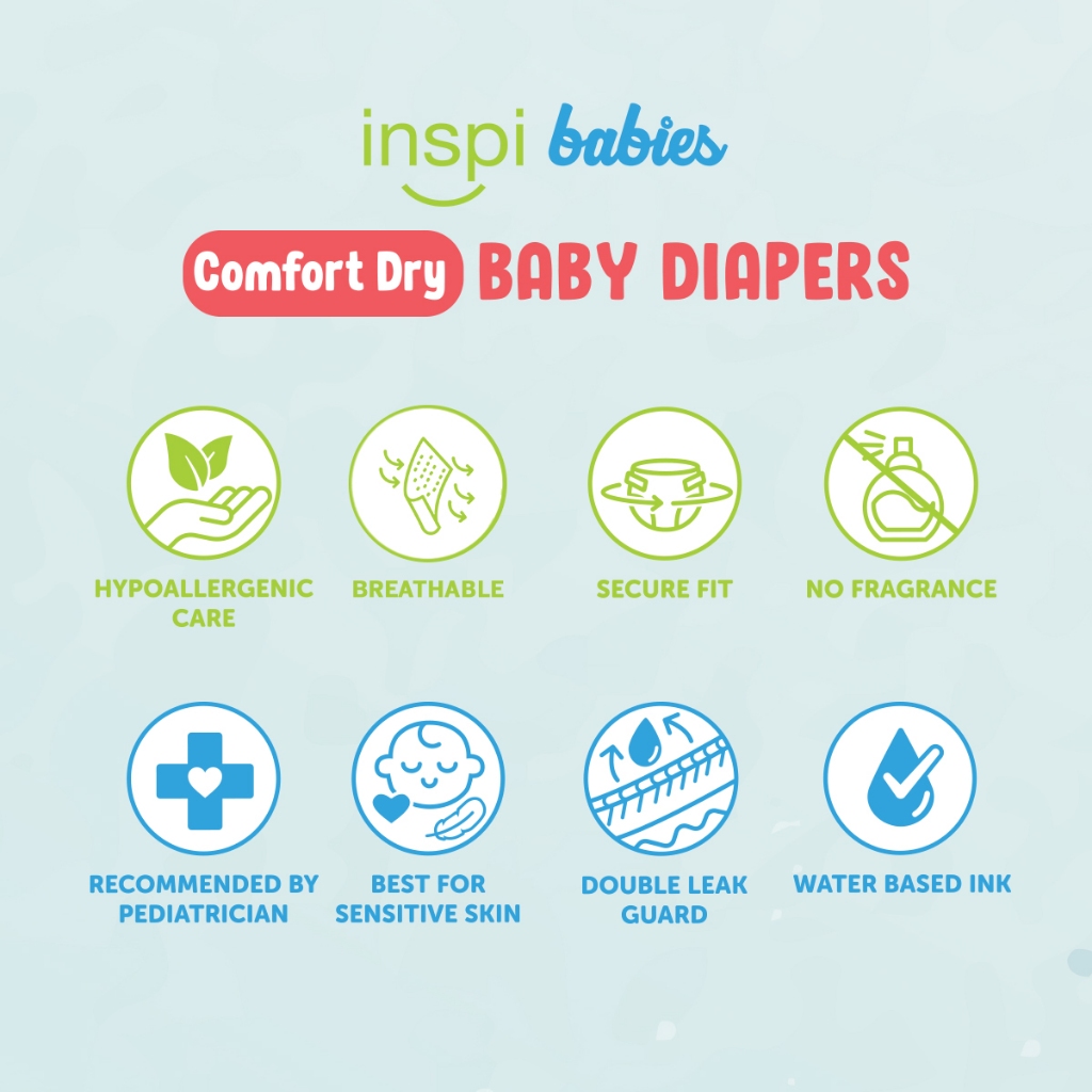 INSPI Babies Comfort Dry Baby Diaper for Baby Taped Newborn - Large Pack of 2 Baby Needs