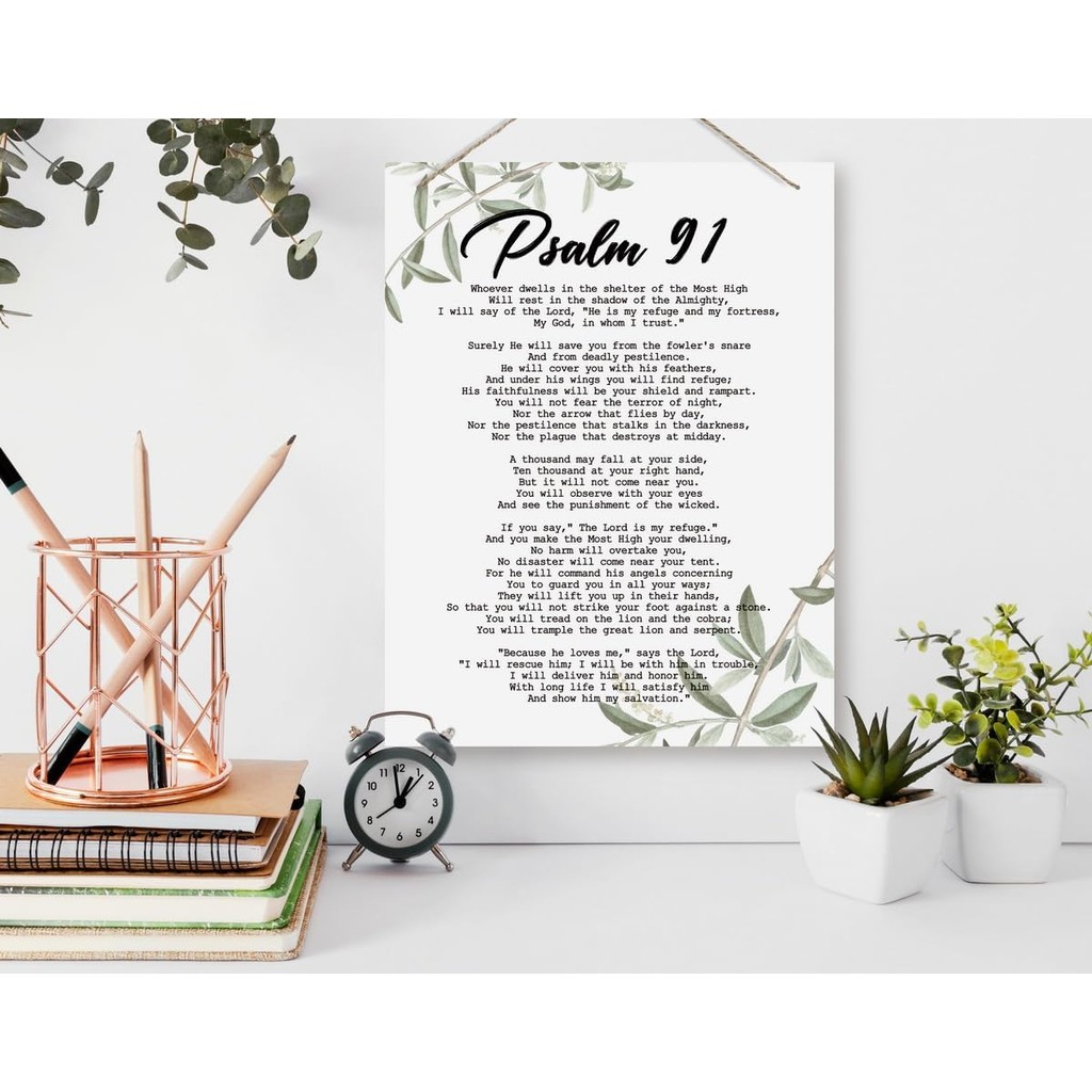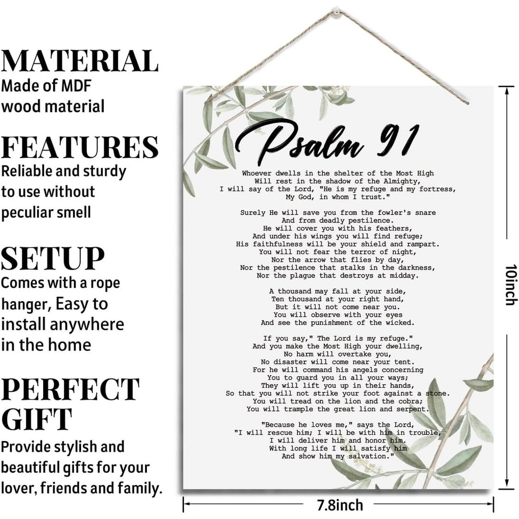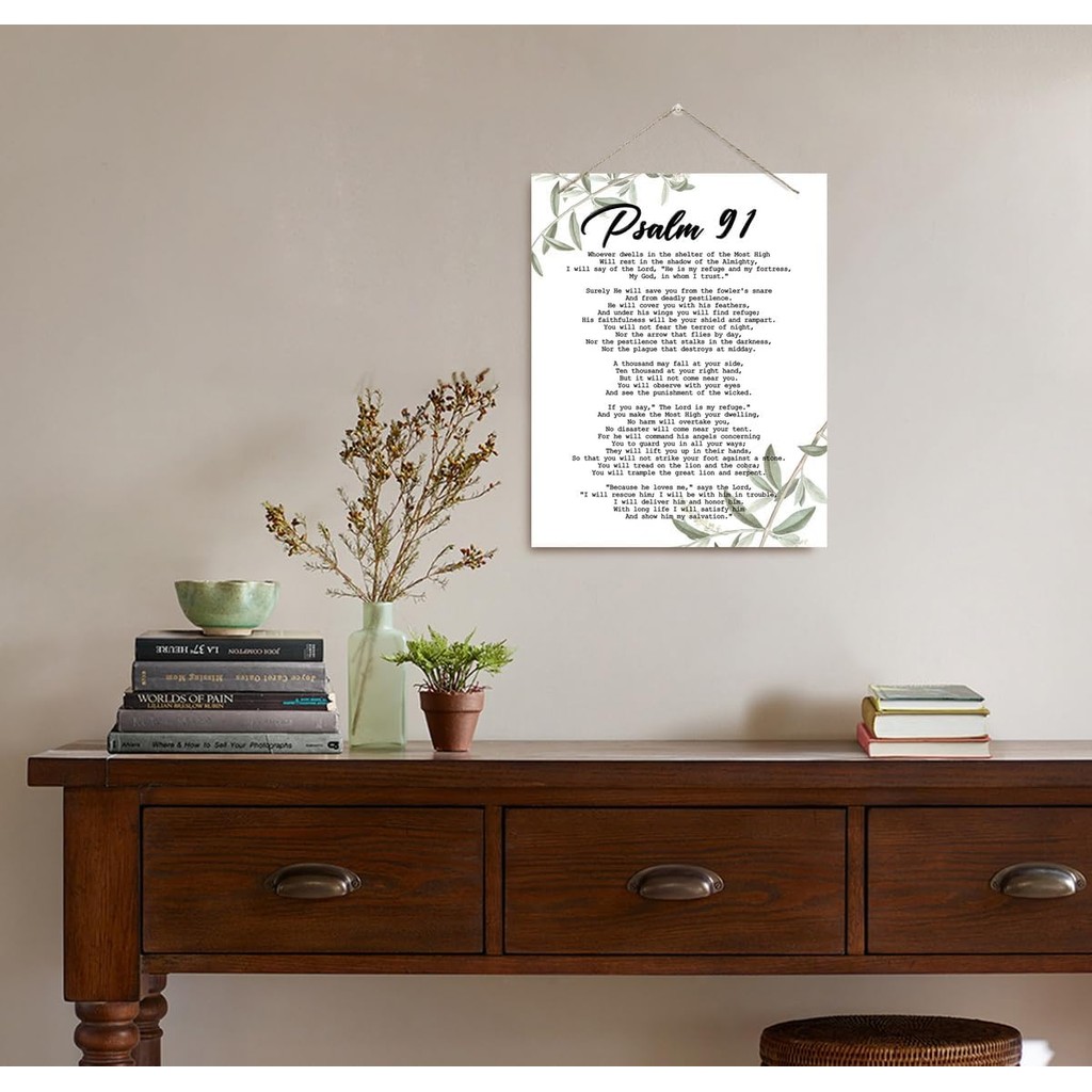Inspirational Wall Decor, Decorative Hanging Wood Signs, Home Office Wall Decor Gift, Religious Hone Wall Decor, Christian Artwork, Bible Verse Scripture Hanging Sign, Psalms 91 Wa