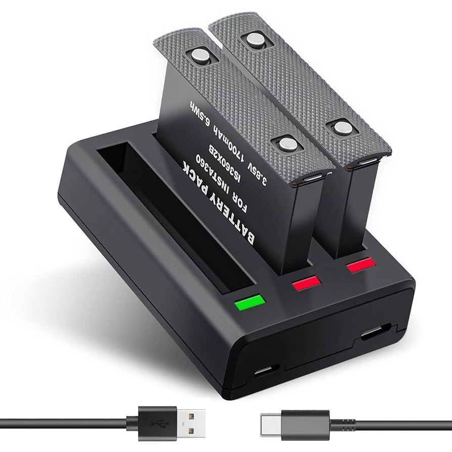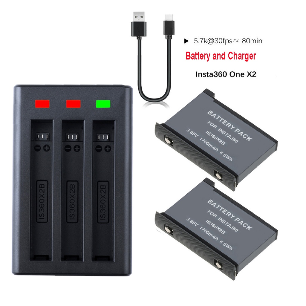 Insta360 One X2 3-Slot Battery Charger USB Type C Fast Charging Hub with 2 Batteries 1700mAh