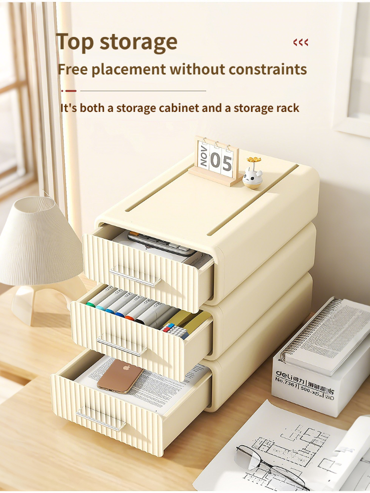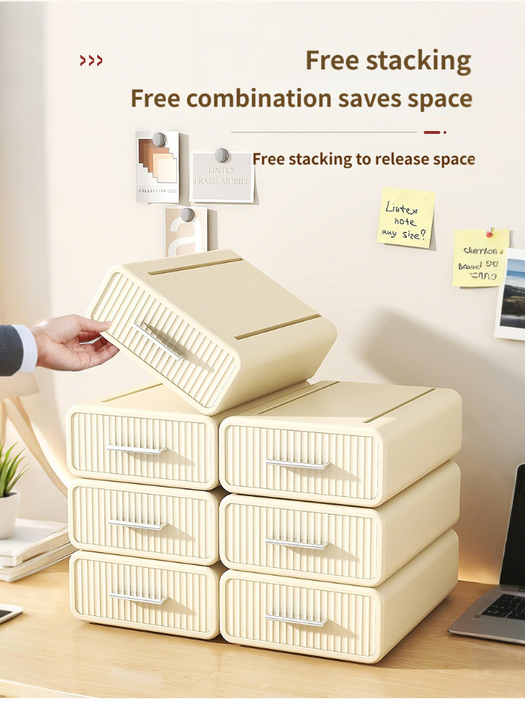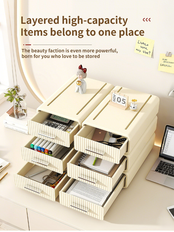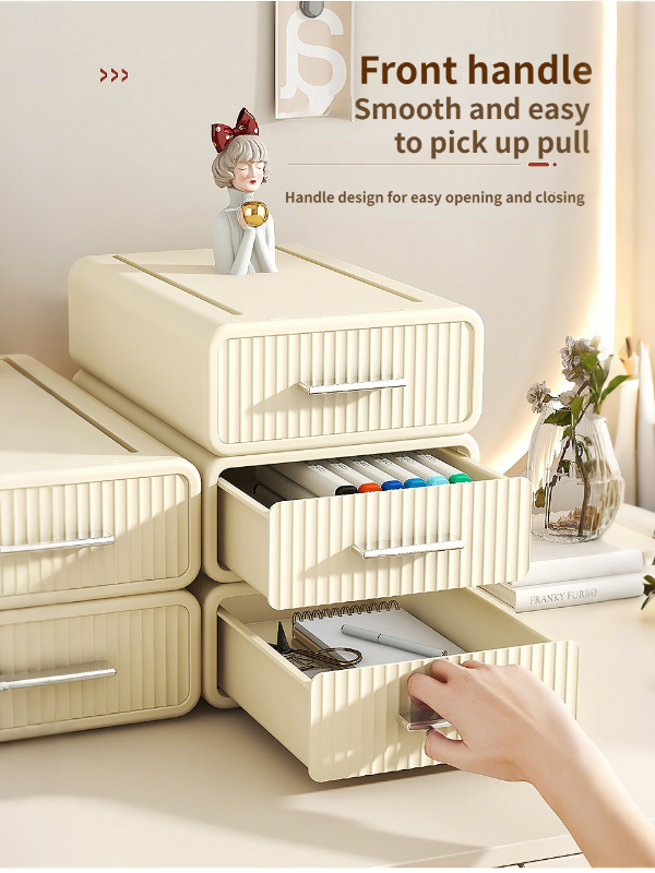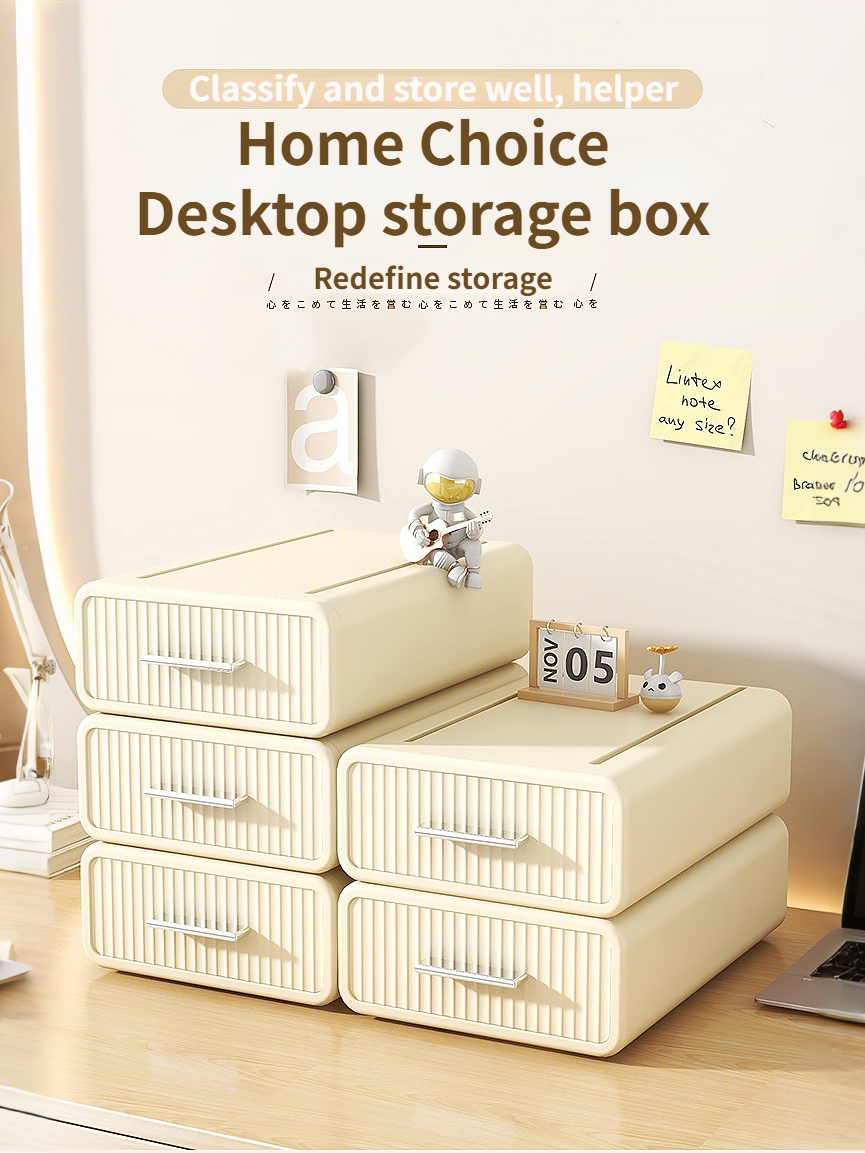 Installation-free Table Organizer Desk Drawer Organizer Storage Box Large Capacity Beige striped
