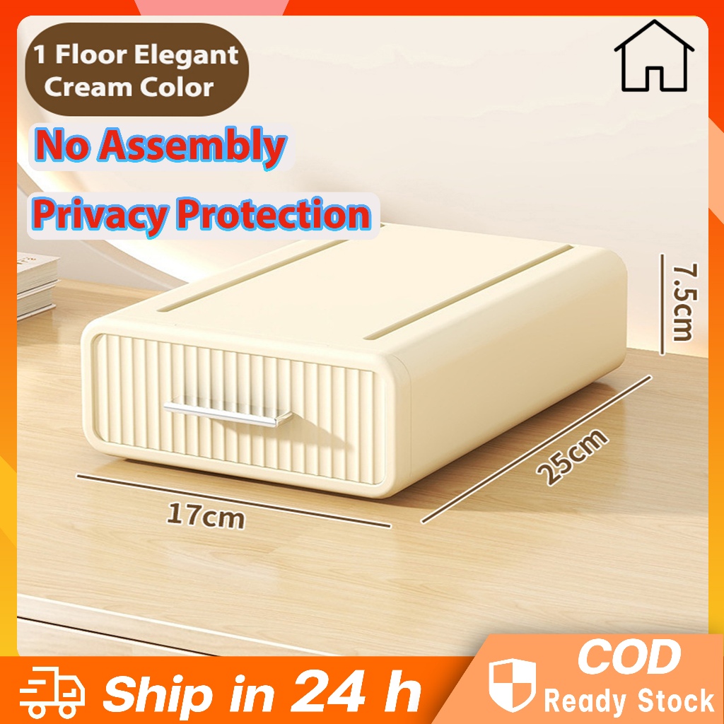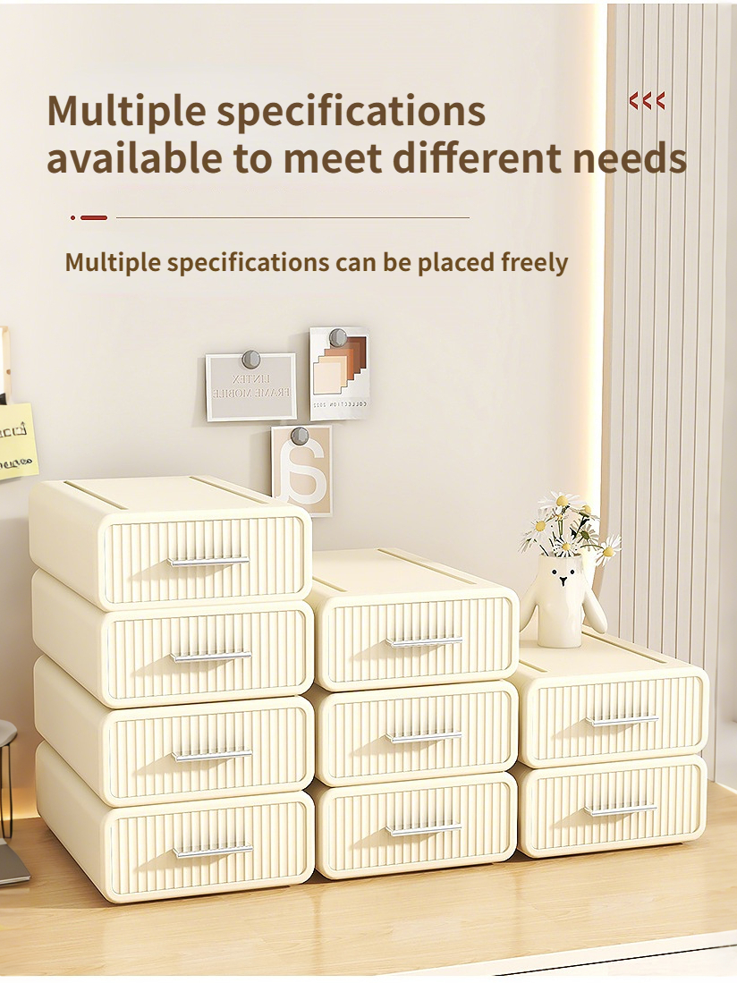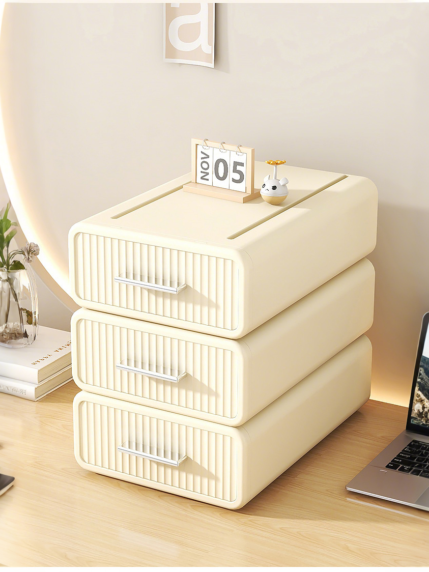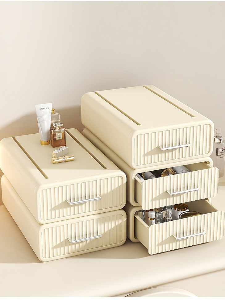 Installation-free Table Organizer Desk Drawer Organizer Storage Box Large Capacity Beige striped