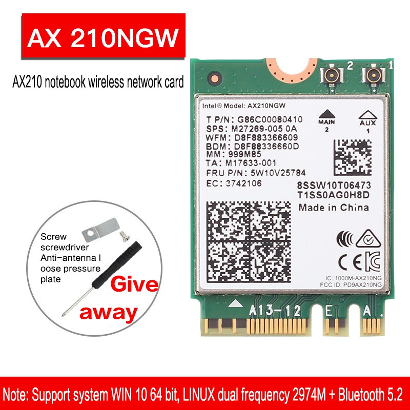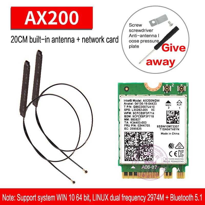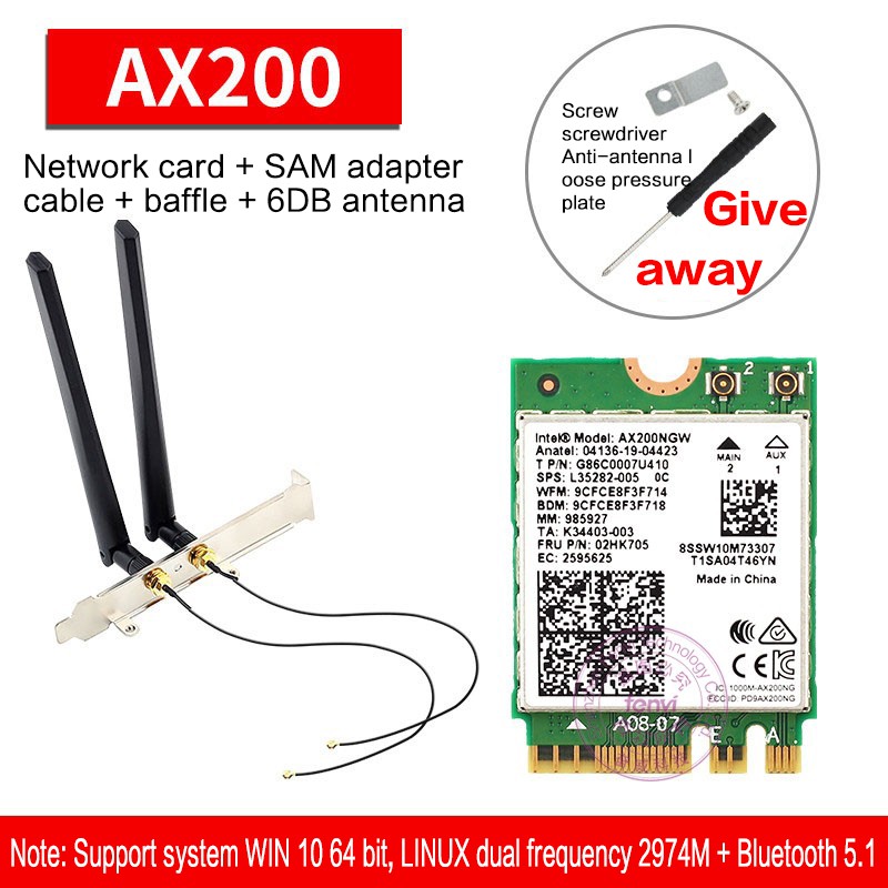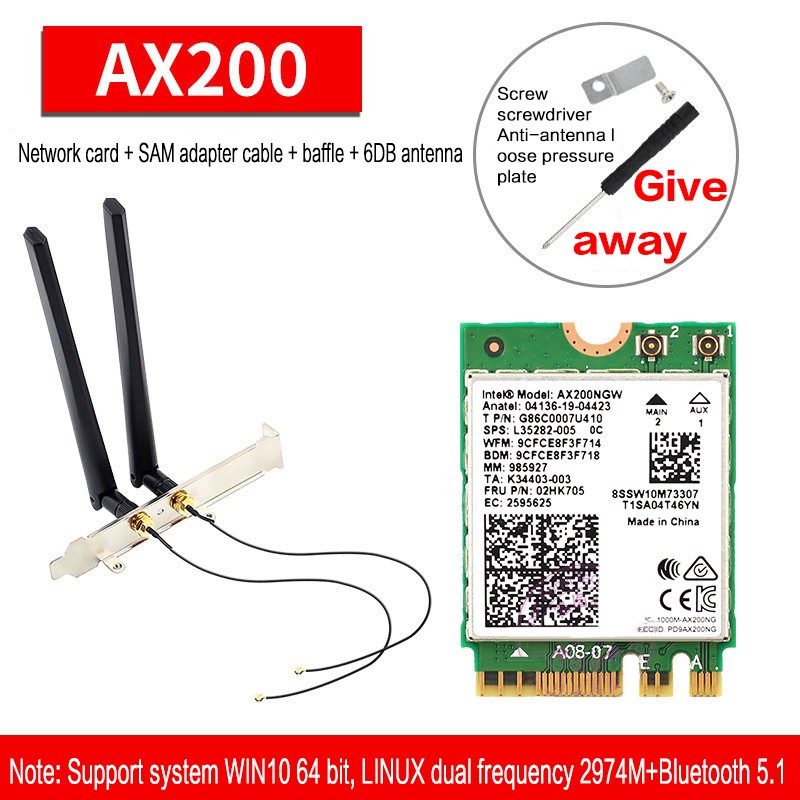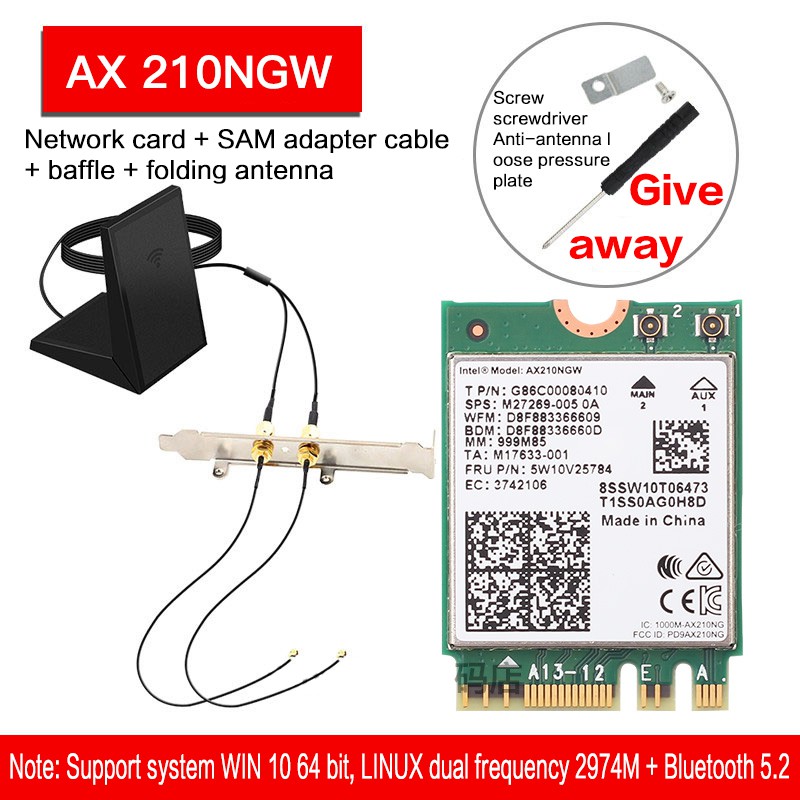 Intel AX200 AX 210NGW 8265AC 9260AC AX210 8DB/10DB antenna 5G dual-band Gigabit built-in wireless network card 5.2 Bluetooth