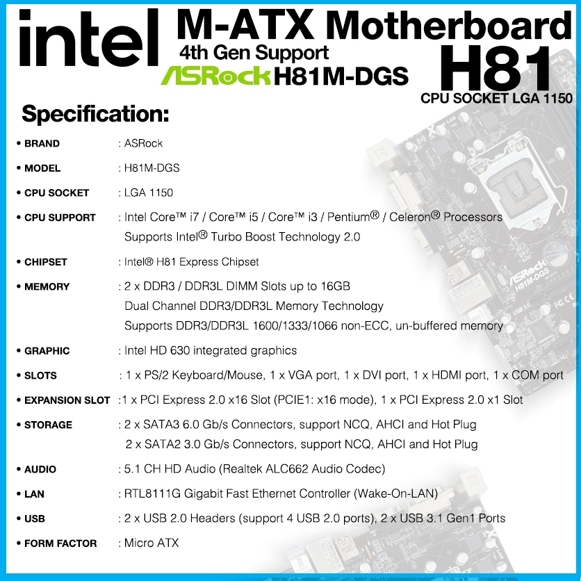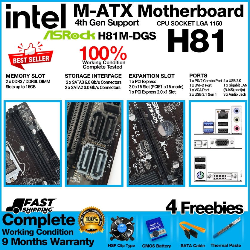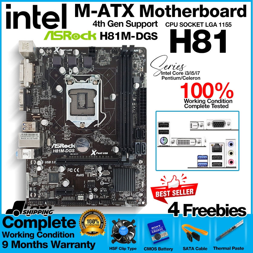 Intel H81 Motherboard-Processor Bundle Set - Core i3/i5 4th Gen - HDMI/DVI/VGA Port [w/ FREEBIES]