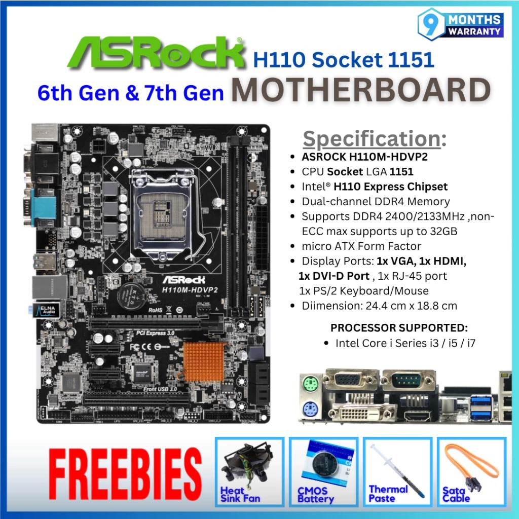Intel Processor Motherboard set | 9th 8th 7th 6th 4th 2nd/3rd Gen | 1155, 1150, 1151 | H310 H110 H81