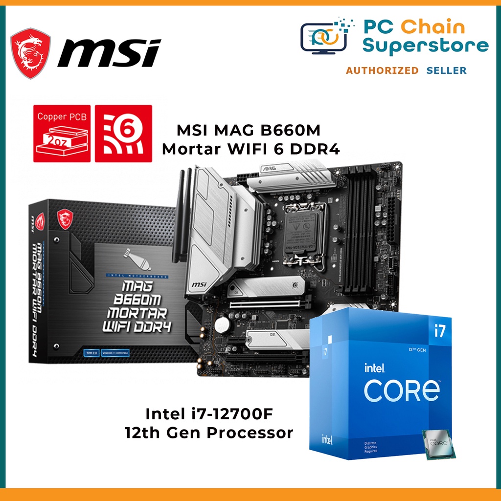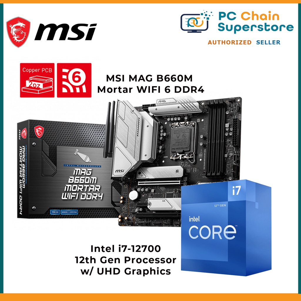Intel i7-12700 / i7-12700F i7 12th Gen Processor + MSI MAG B660M Mortar WIFI 6 DDR4 mATX Motherboard