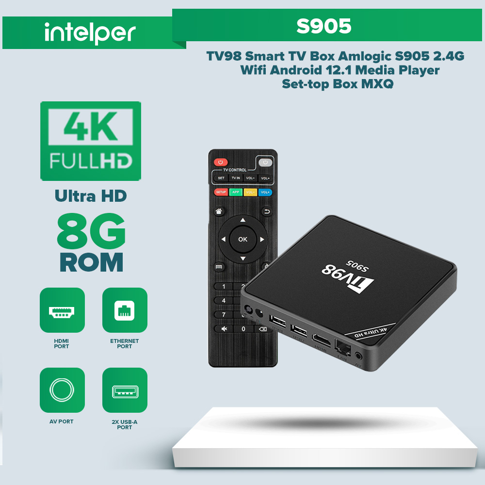 Intelper TV98 S905 Android 12 Smart TV Box 4K HD 2.4GHz WiFi Connect 1+8GB Media Player Box
