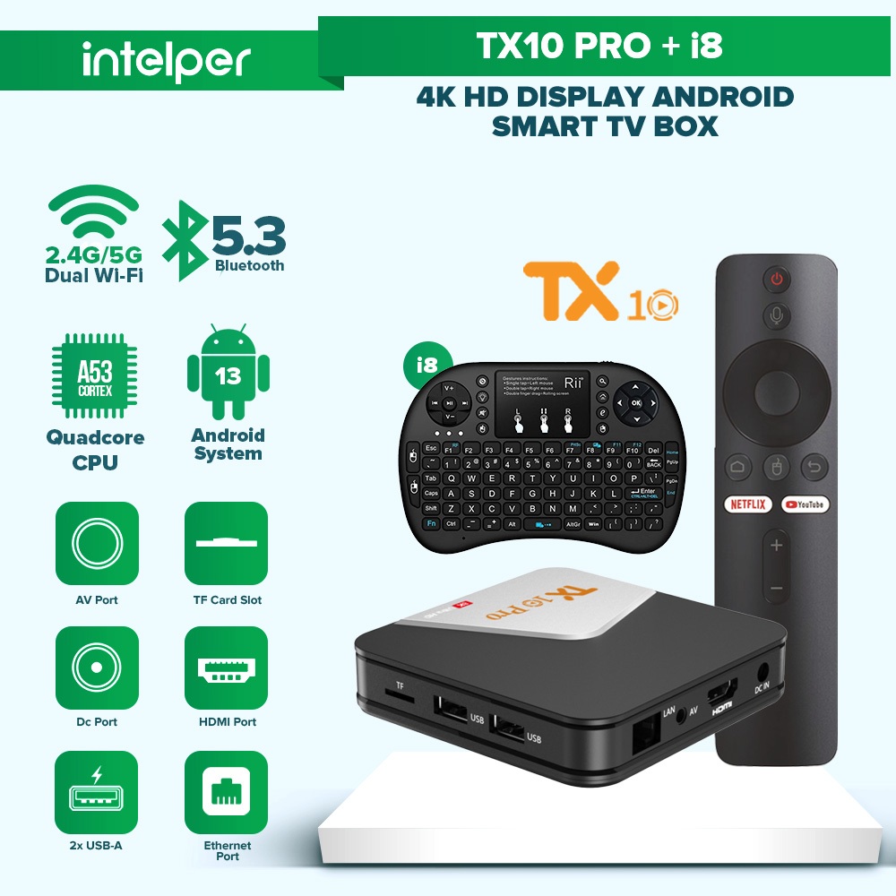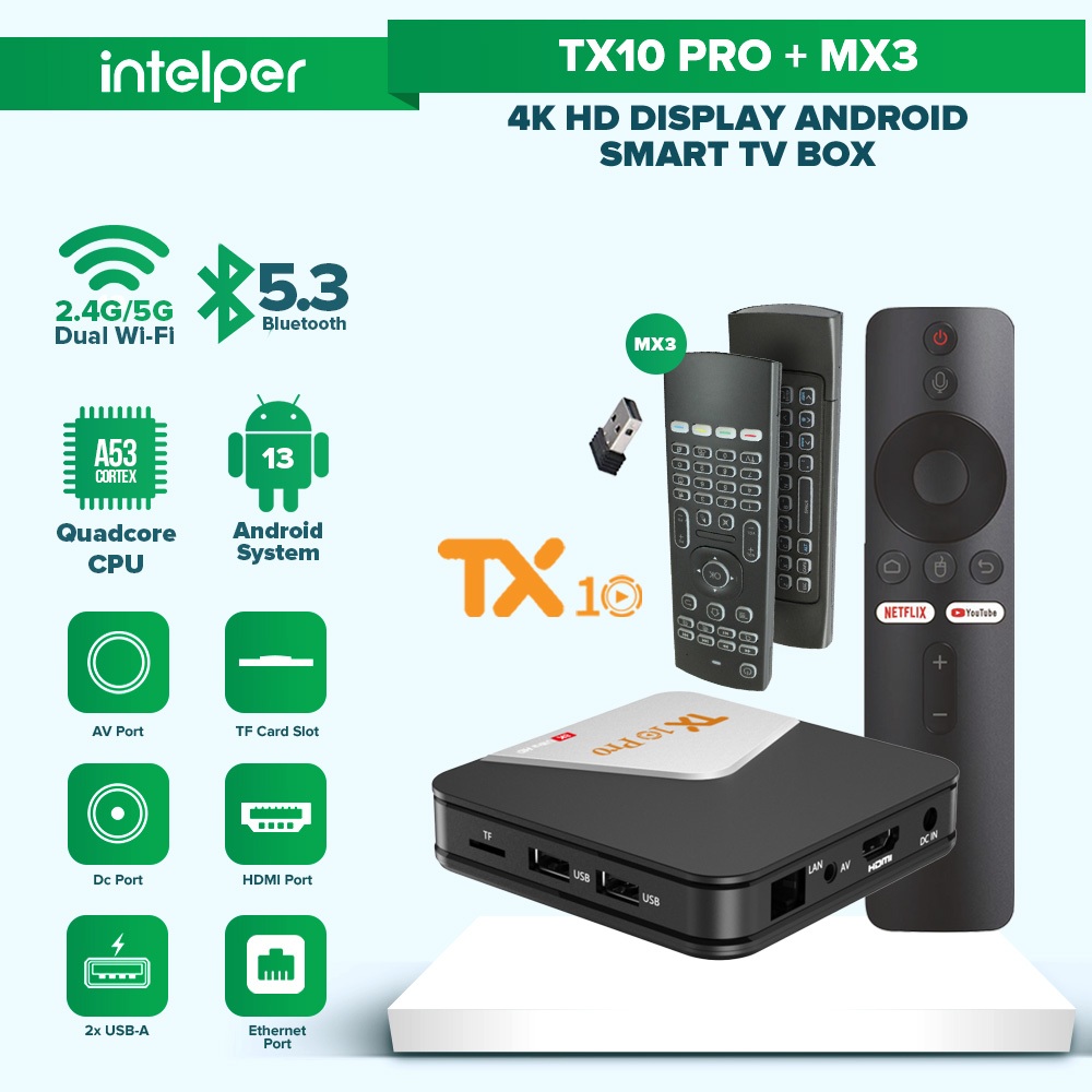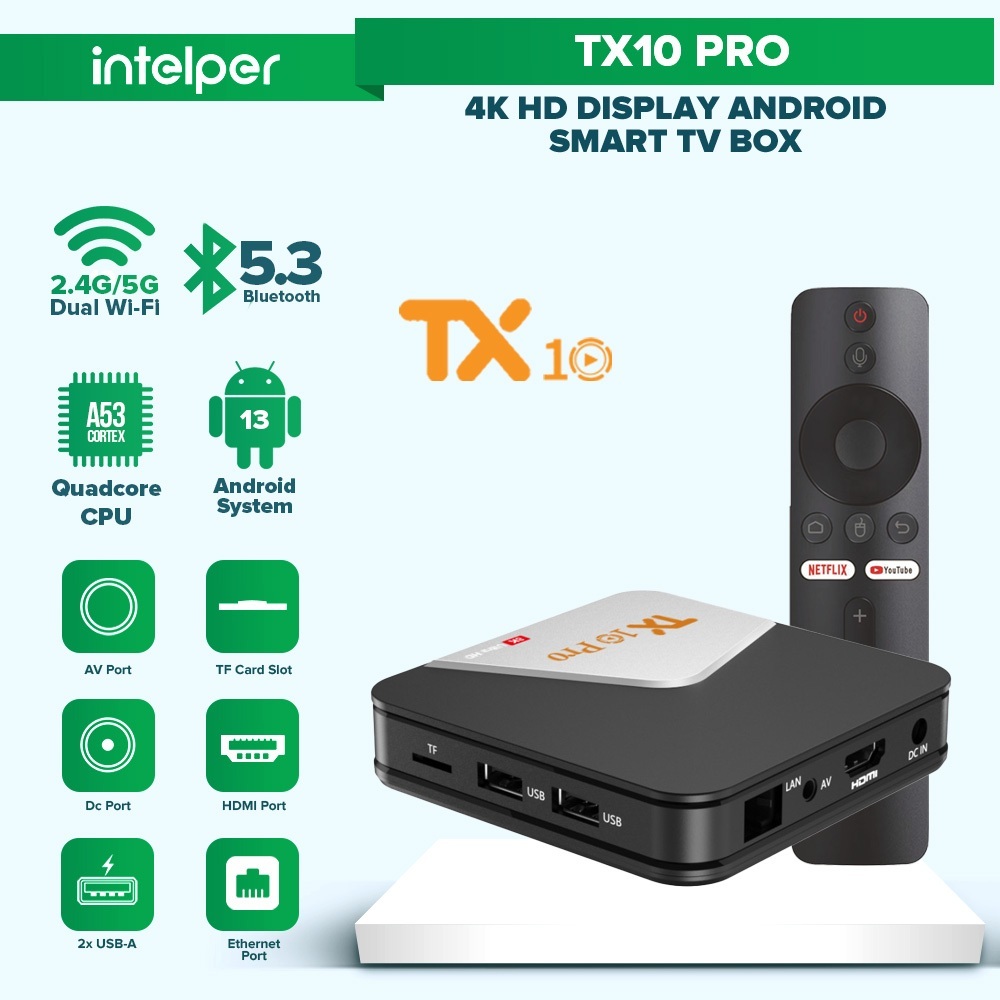 Intelper TX10 Pro 2+16GB Android 13 TV Box 8K BT5.0 Voice Remote 5G Dual WiFi LED Digital Display