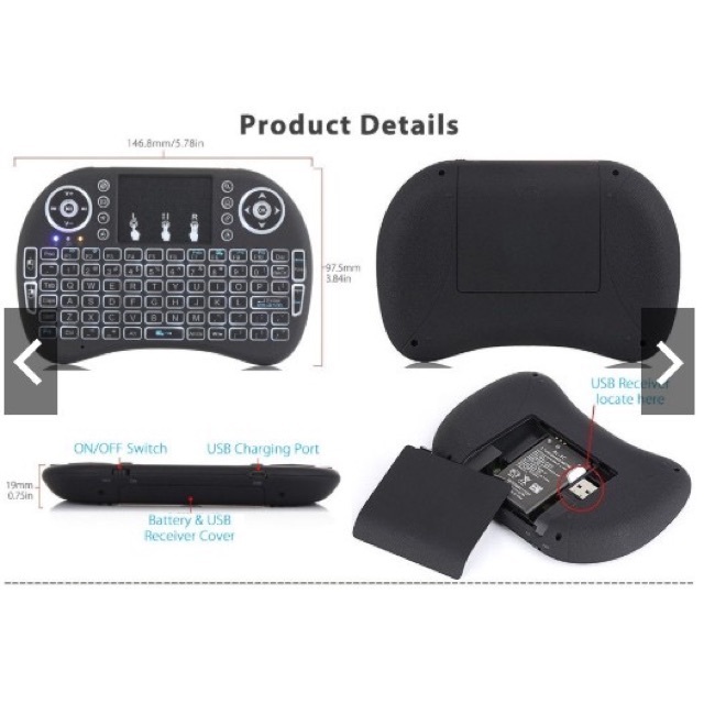Intelper i8 Wireless Mini Keyboard Backlight 2.4Ghz Bluetooth Touchpad Keyboard for TV Laptop Tablet