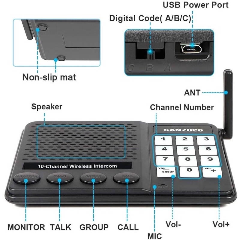 Intercom 10 Channel Wireless intercom 1000FT Long Range distance Wireless intercom for Business Office House,Room Intercoms