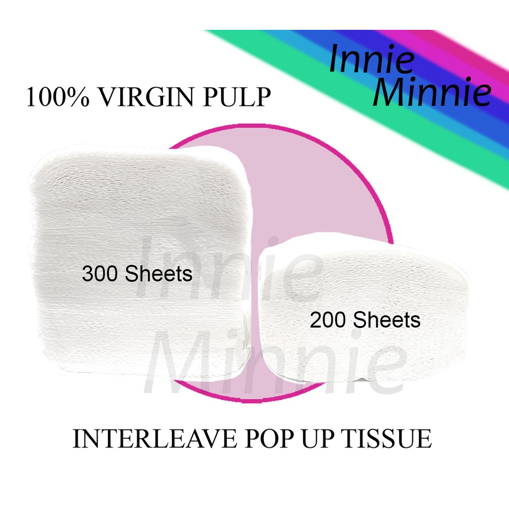 Interleave Pop Up Tissue 100% Virgin Pulp 2PLY 200 Sheets / 300 Sheets